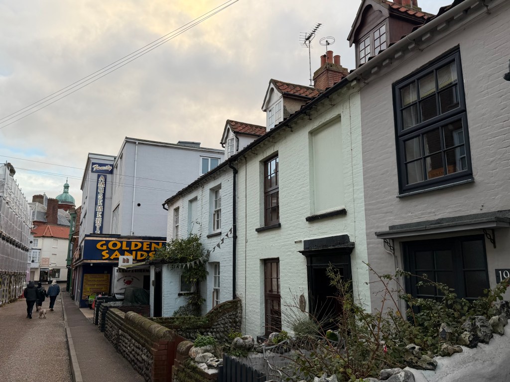 I had hoped for this trip to have a few new toys to play with – like the Go pro that I want to mount for taking video in transit, but thanks to playing with the water drain earlier I had run out of time 😦 The road across the top of Norfolk is picturesque, even when the weather is poor – next time, I will capture it. (I am also glossing over the somewhat concerned noises Jo made when i went down what appeared to be a cow lane and across quite a full water ford….)We got over to the campsite for around two in the afternoon, and got ourselves parked up. The pitch was level and after a bit of an argument with the frost valve – see earlier! We went for a walk into the town.