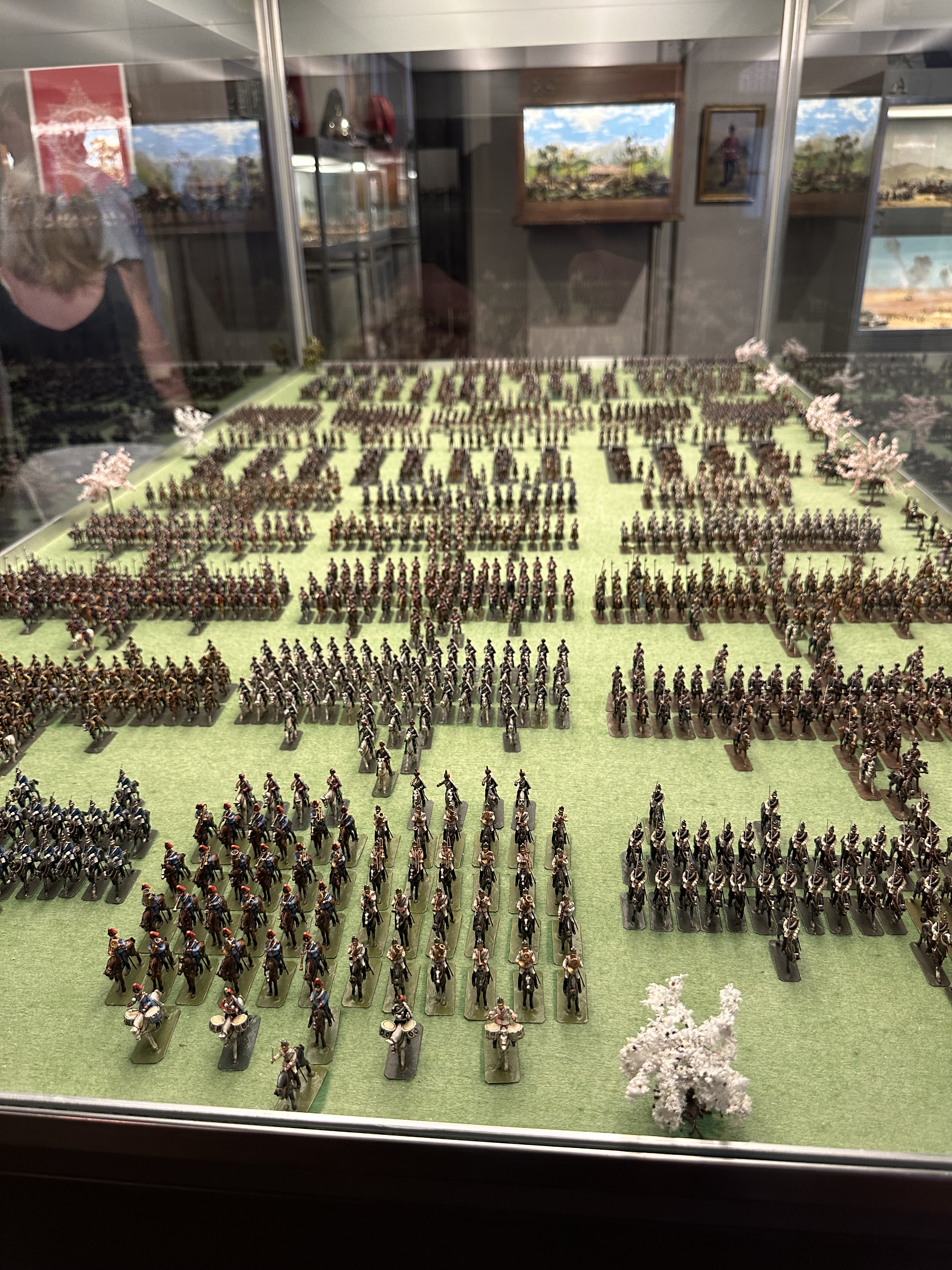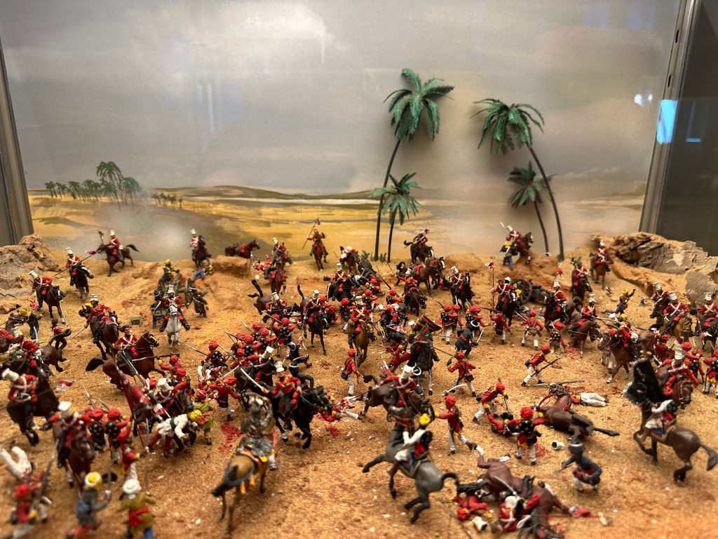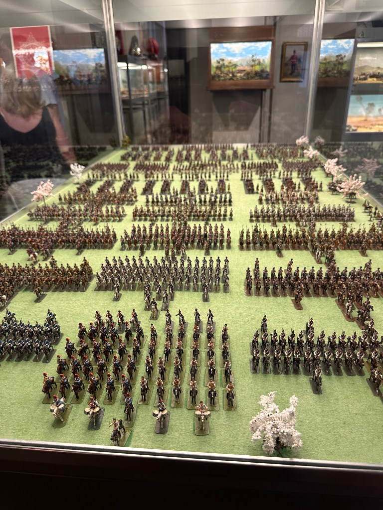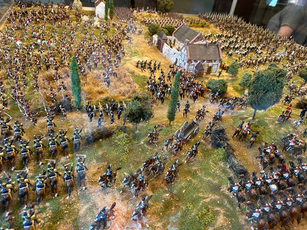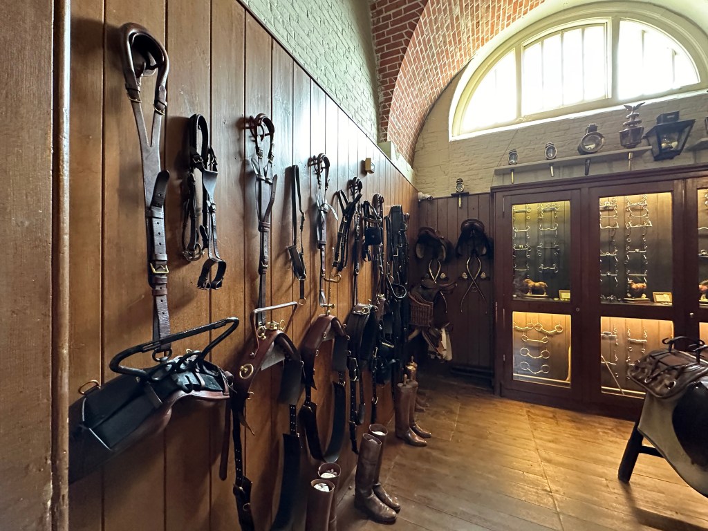 After a decent potter – and being pleased with some of the deliberate effects – the faux Greek temple made of wood, not stone being brilliant, we left the walled garden and headed up to the stable block. The stable block is the size of many stately houses and is remarkable as the original stables are there – along with a tack room, complete with polo mallets… more of interest to me – and just about every single chap visiting – was the toy soldier collection – the worlds largest private collection and the rooms and displays were amazing. What impressed – or possibly scared Jo was that as she was reading the pamphlet with all the details in of each diorama – I was correctly identifying the units, battles and campaigns…. She finally used a musket to beat me away and towards the main house.