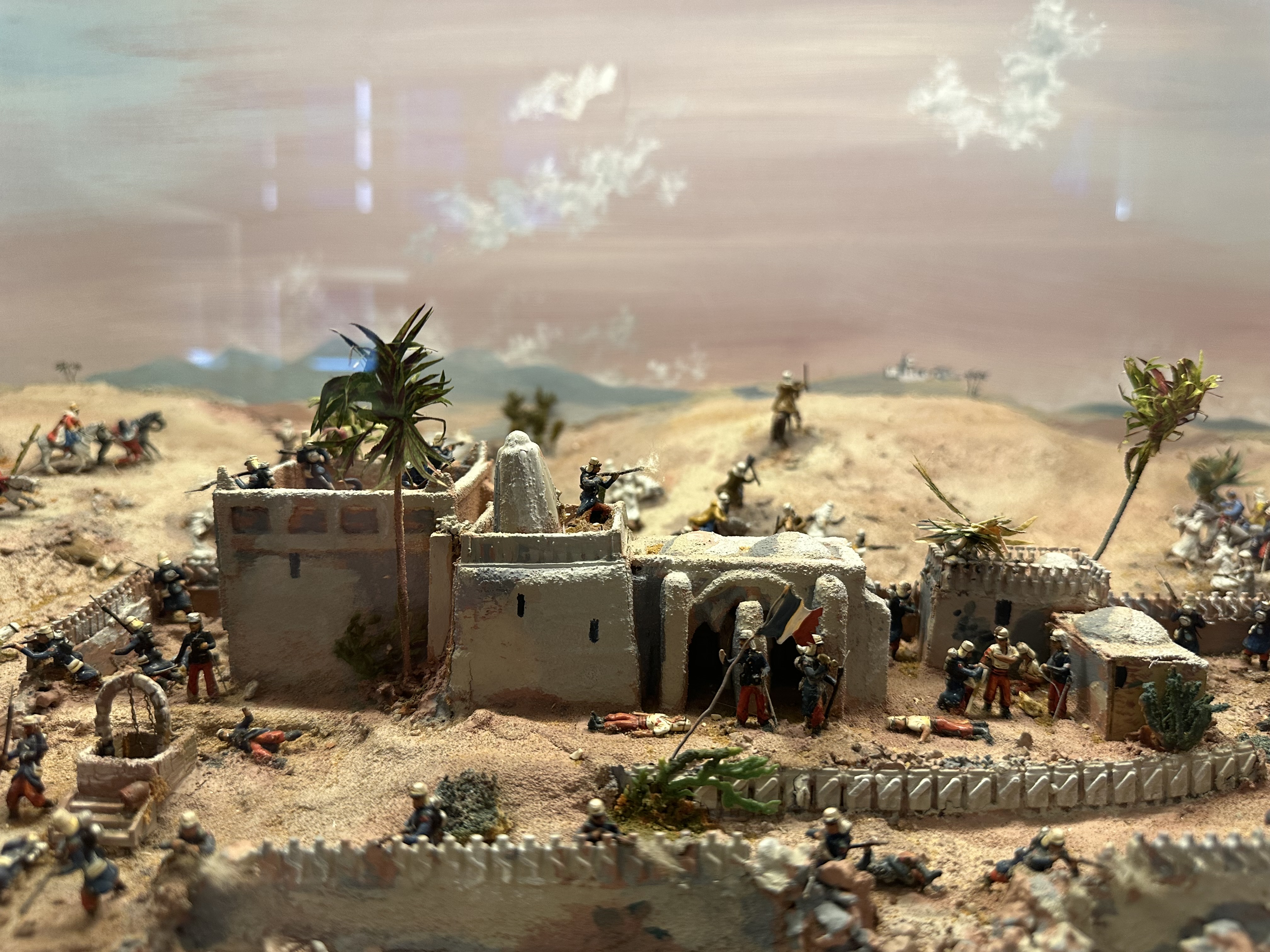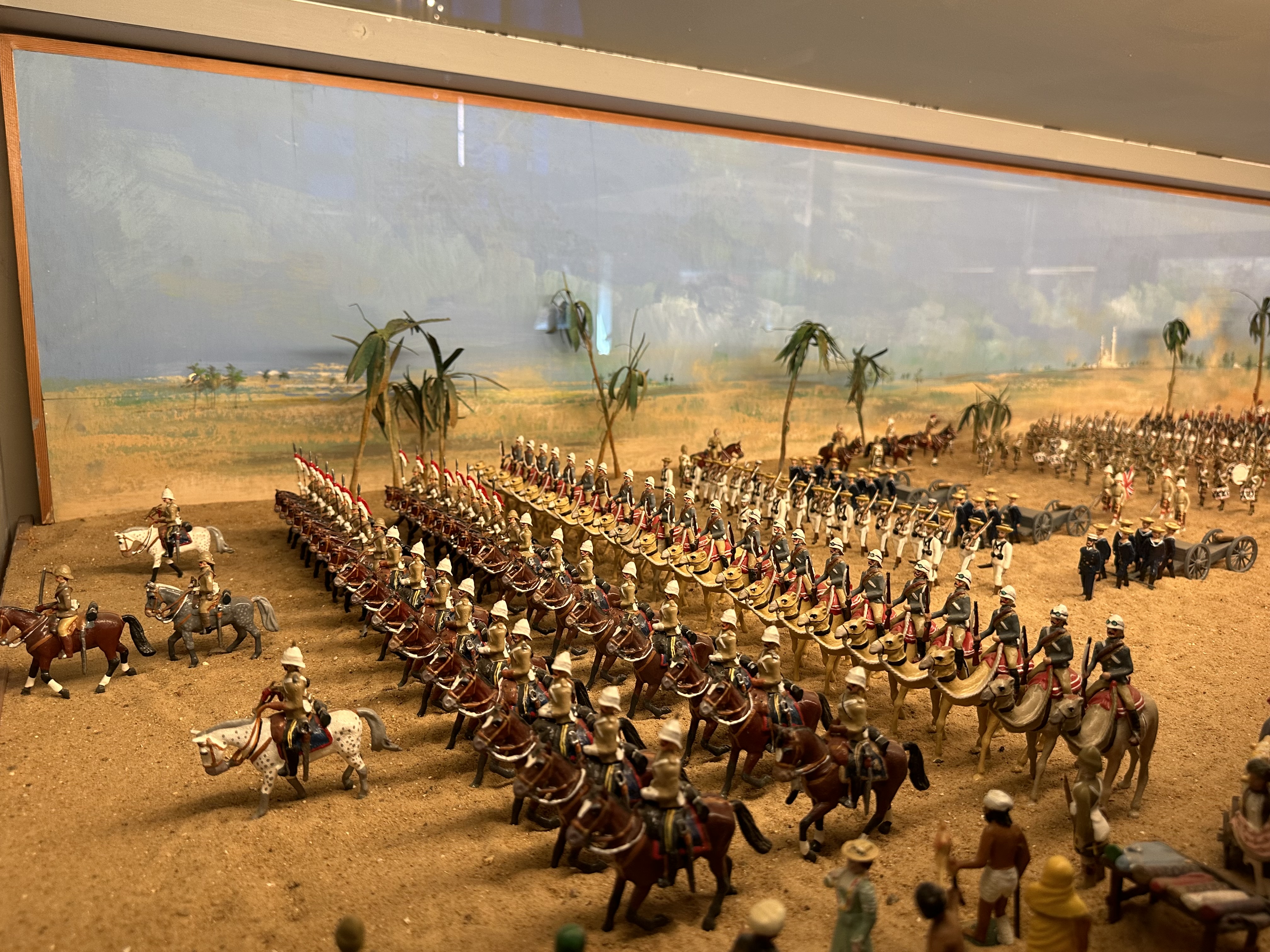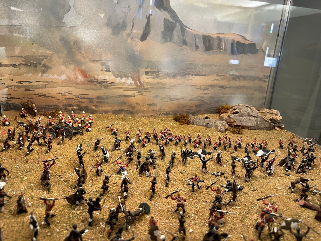 After a decent potter – and being pleased with some of the deliberate effects – the faux Greek temple made of wood, not stone being brilliant, we left the walled garden and headed up to the stable block. The stable block is the size of many stately houses and is remarkable as the original stables are there – along with a tack room, complete with polo mallets… more of interest to me – and just about every single chap visiting – was the toy soldier collection – the worlds largest private collection and the rooms and displays were amazing. What impressed – or possibly scared Jo was that as she was reading the pamphlet with all the details in of each diorama – I was correctly identifying the units, battles and campaigns…. She finally used a musket to beat me away and towards the main house.