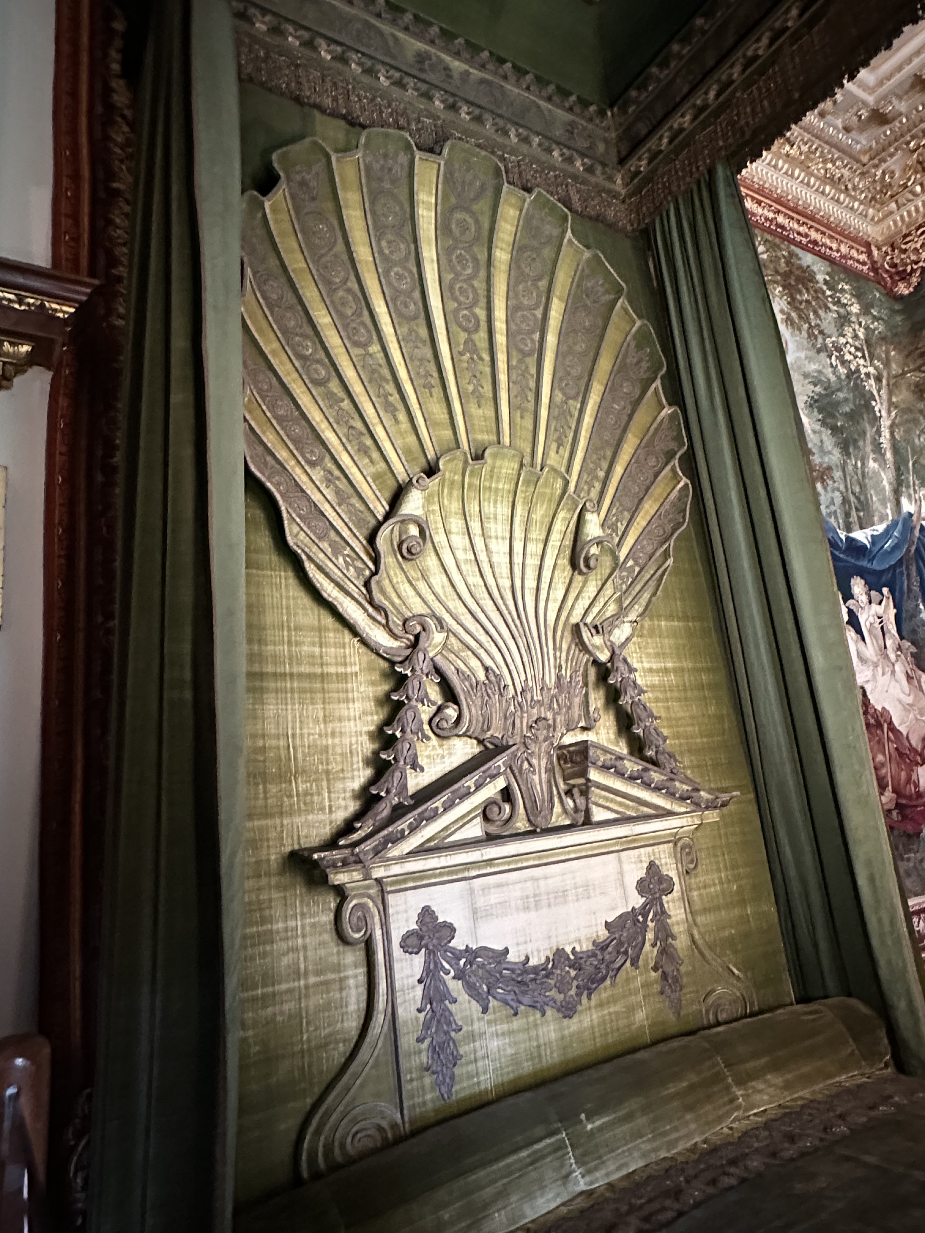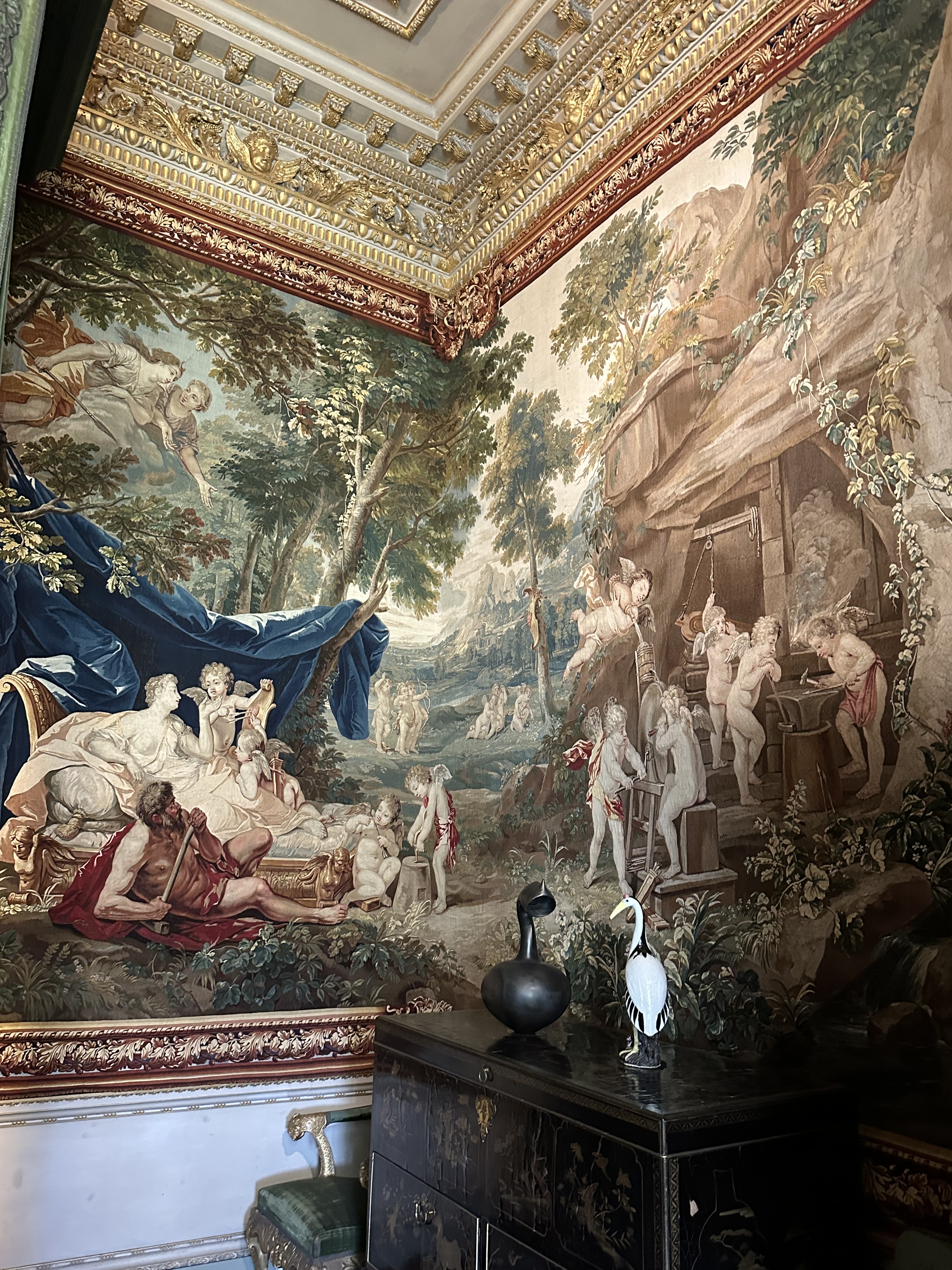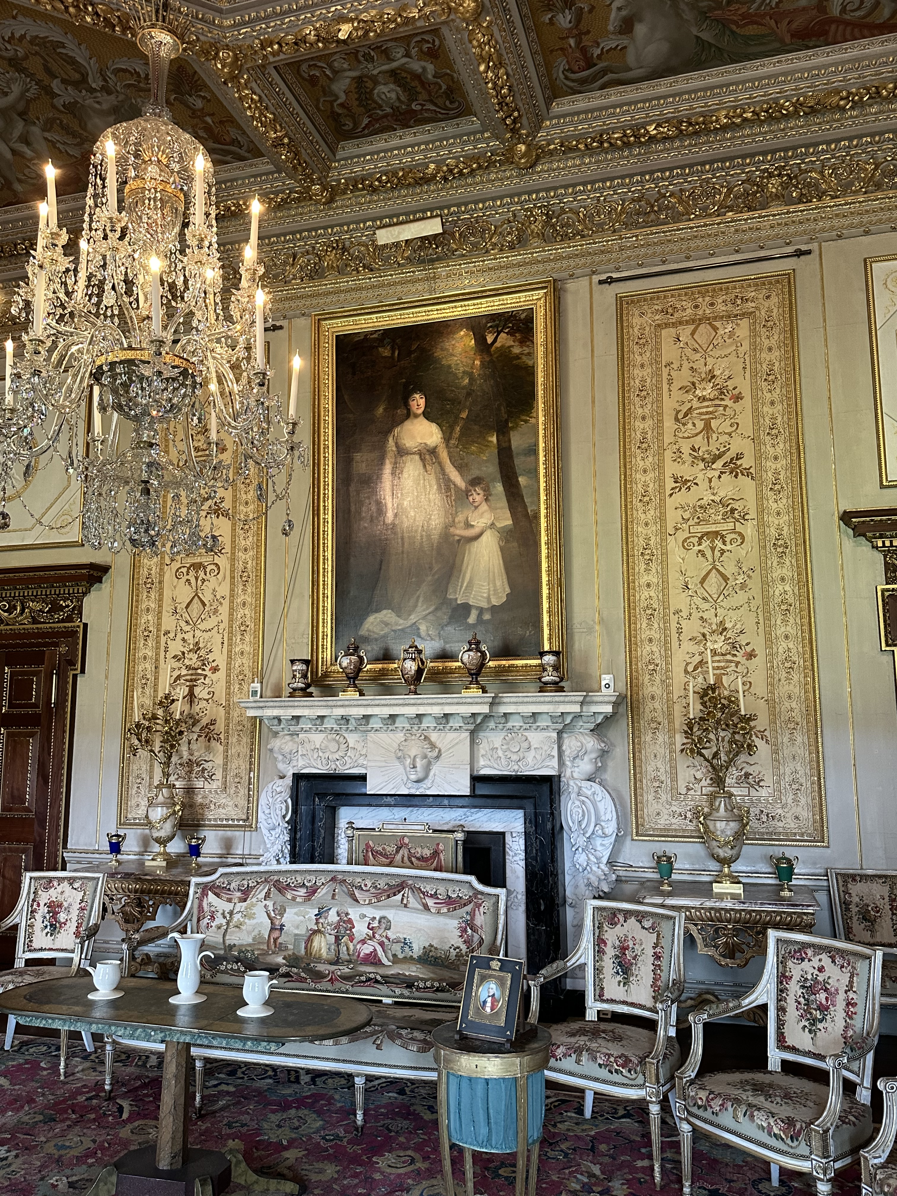 The main rooms are difficult to try and describe – and the photographs I took cannot do it justice being honest – currently all the rooms have some modern additions as a part of a visiting artist’s work. There was also a piece of her work in a room in the range, which I did like, but the jury is out for me! One of the fascinating items for me was the consort’s and Prince of Wales’ state thrones -they live at Houghton until needed at Westminster etc…. The final thing of note is the wonderful Gladiator statue at the bottom of the main stairs – a stunning piece of art.