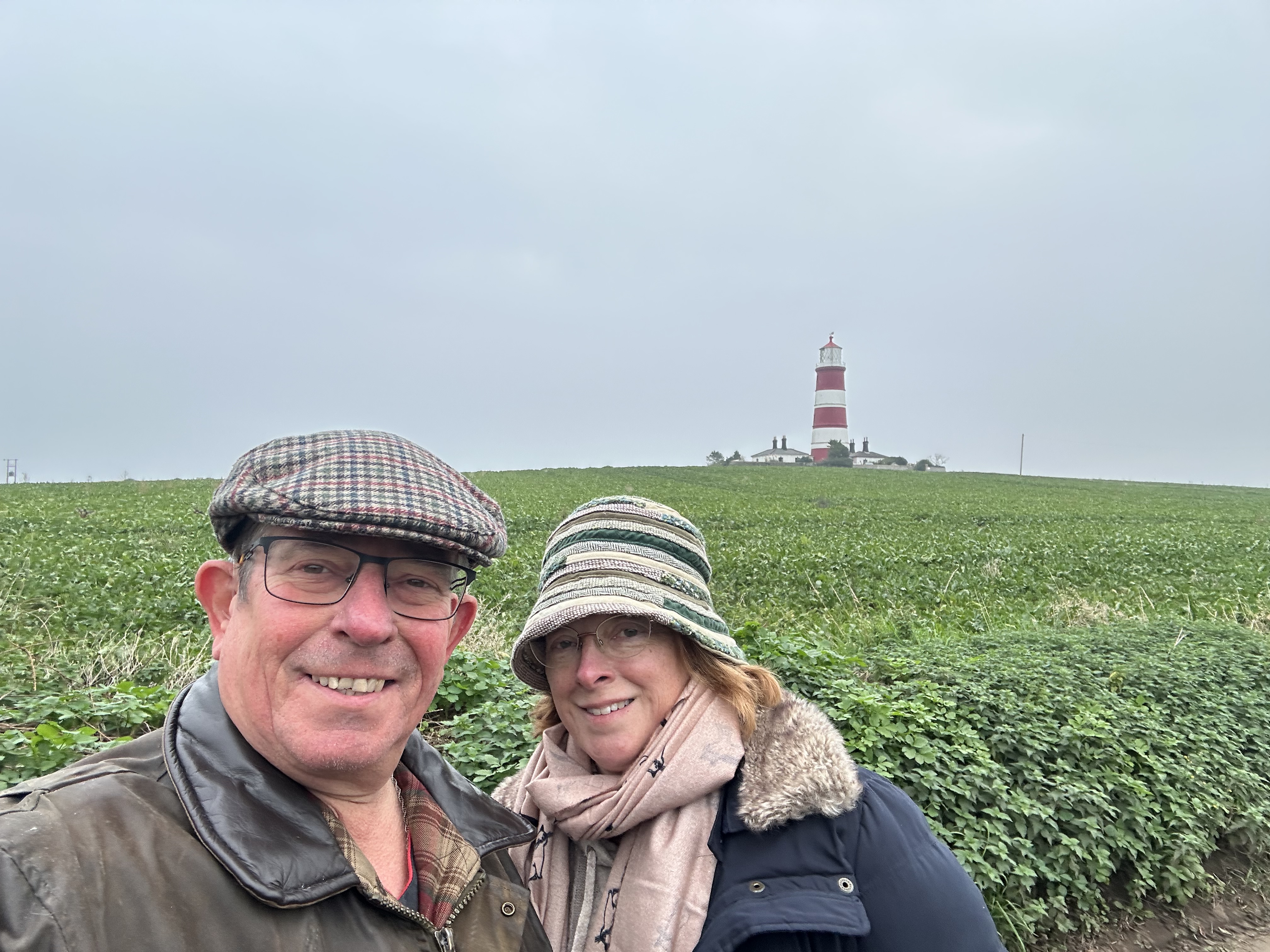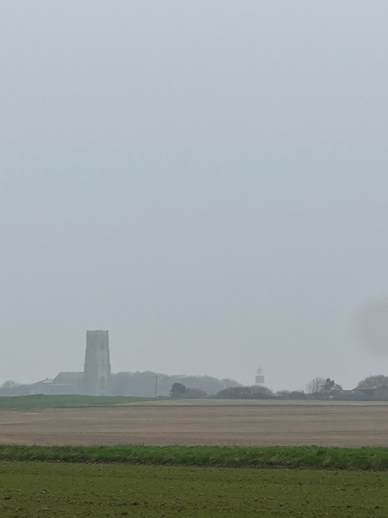 Once that was all done – we met up with Steve and Diane and went for a wander. The walk to Happisburgh was around 5 KM – and on the out leg we went via the countryside, not the beach. The weather was a tad foggy, but not overly cold – the views were not fantastic, thanks to the fog, but yet again the variety of the Norfolk countryside never fails to deliver.