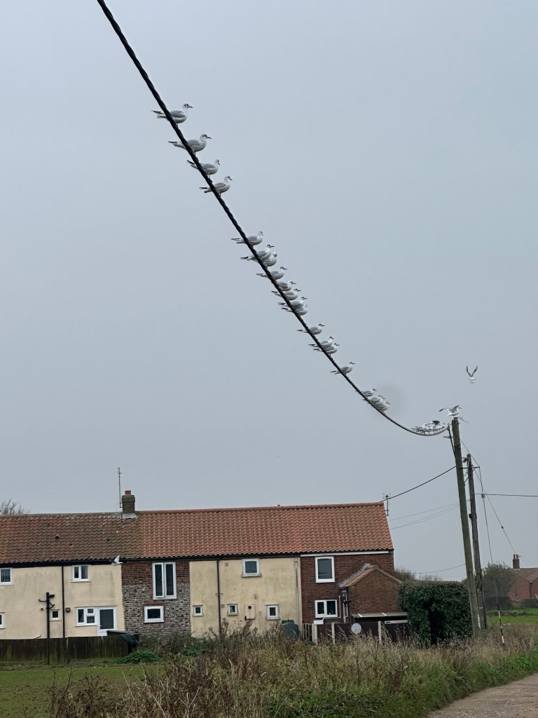 As we approached our camp site we came across an enormous flock of seagulls who had formed an orderly queue to shoot on a Mercedes – got to love Karma Norfolk style 🙂