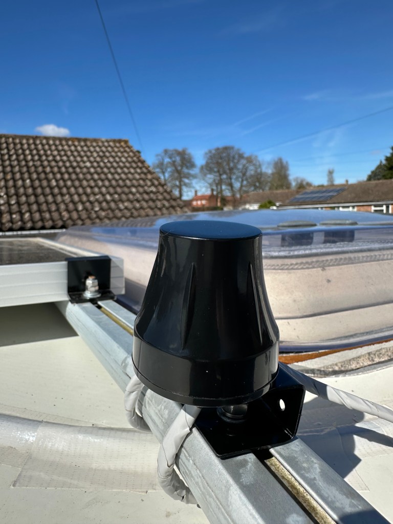 So, kit was all delivered and time to start installing – and this was going to be straight forward. I knew i had space on the roof bar to mount the antenna and could then run the antenna cable inside through the old cooker vent – the same way i had done the Solar Panel fit, but the mounting kit was not right….. but i love hammers, and Jo will tell you i am familiar with all sorts of vices 😉