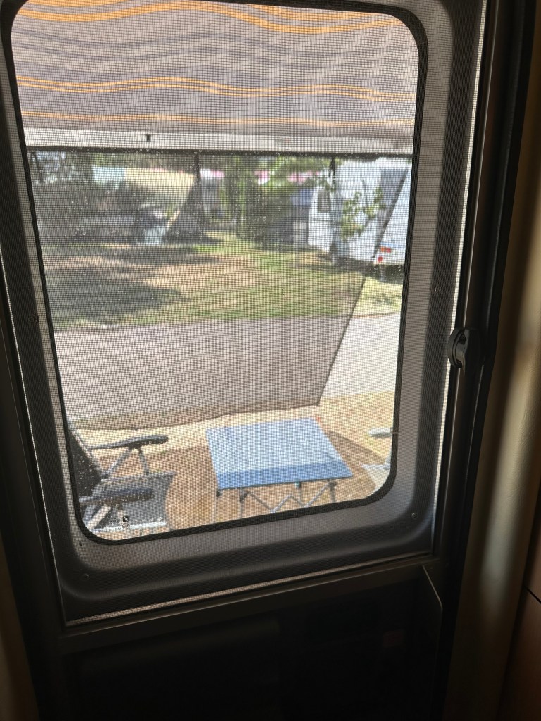 Finally, I had a new to us sun screen to fit to the front of the roll out awning – I wanted something that could both act as a bit of a privacy screen, but also to increase the shade – there was no way I was going to put a wind break up as we needed the breeze to try and cool down a tad! With madame still feeling a tad fragile – and a full laundy basket, Today I have mainly done the washing – and i do believe the sun is over the yard arm and a beer is called for!