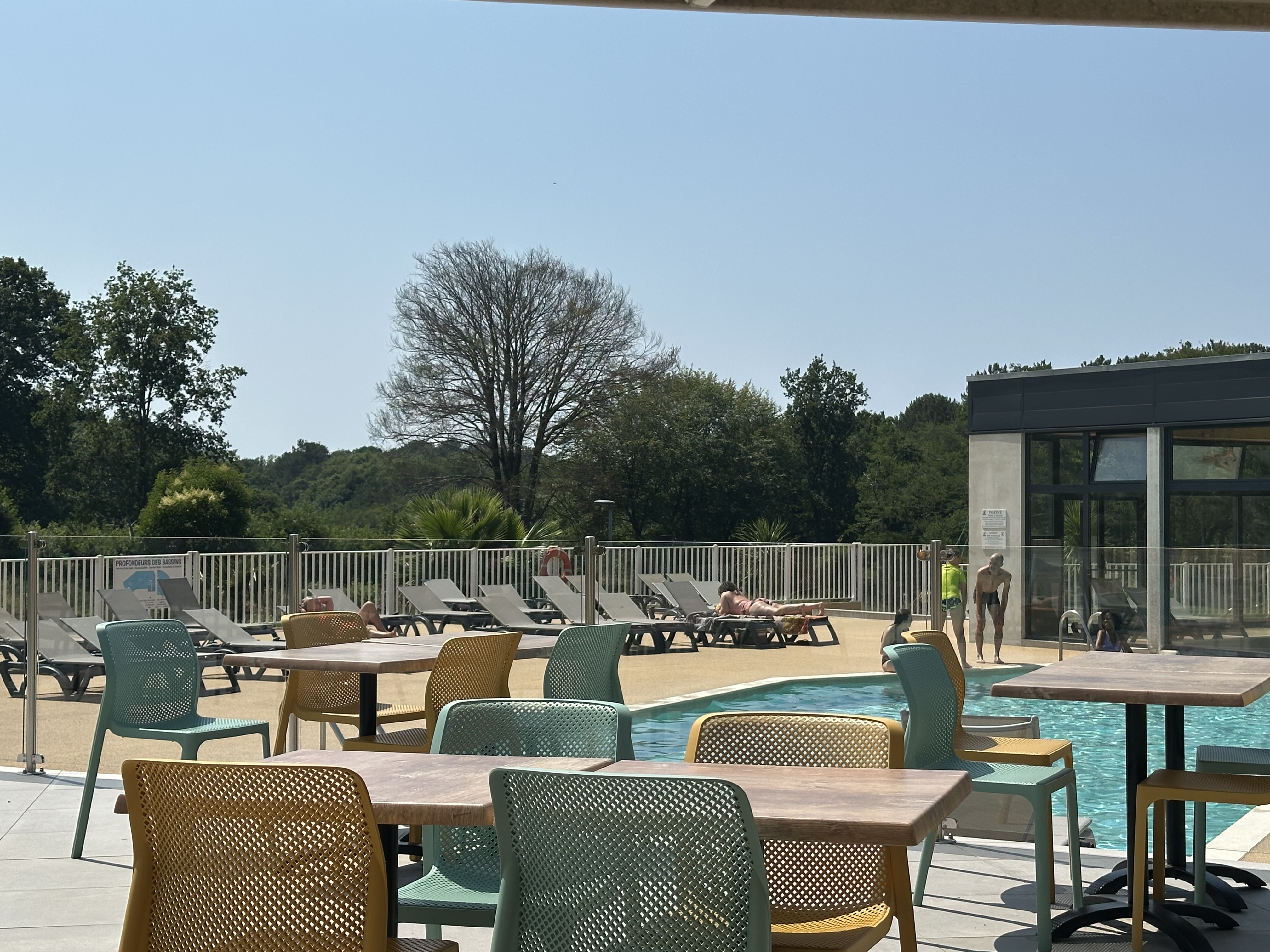 We headed back to the campsite, and checked in – the lady who runs the place took us to our pitch on her Golf Buggy – I felt certain that when it was plugged in to charge, so was she as she was a dynamo in appearance. This site itself is lovely – their is a clubhouse and pool, which was not heated, but that was wonderfully refreshing in the 33 degree sunshine.