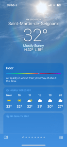 Once we arrived in France, we continued up to Bayonne – now our friend Stephen had advised me that the Fetes du Bayonne was going on while we were there – but, it had now seemingly developed a darker side; certainly i noticed an awfully strong smell of testosterone around the town – and most men were wearing the white shirt and red neckerchiefs…. I am also aware that a large part of the festival involves bull runs / bull fights and i am – well, just uncertain to be honest. We decided to pass on going into the town, especially as Madame was wilting under the heat.