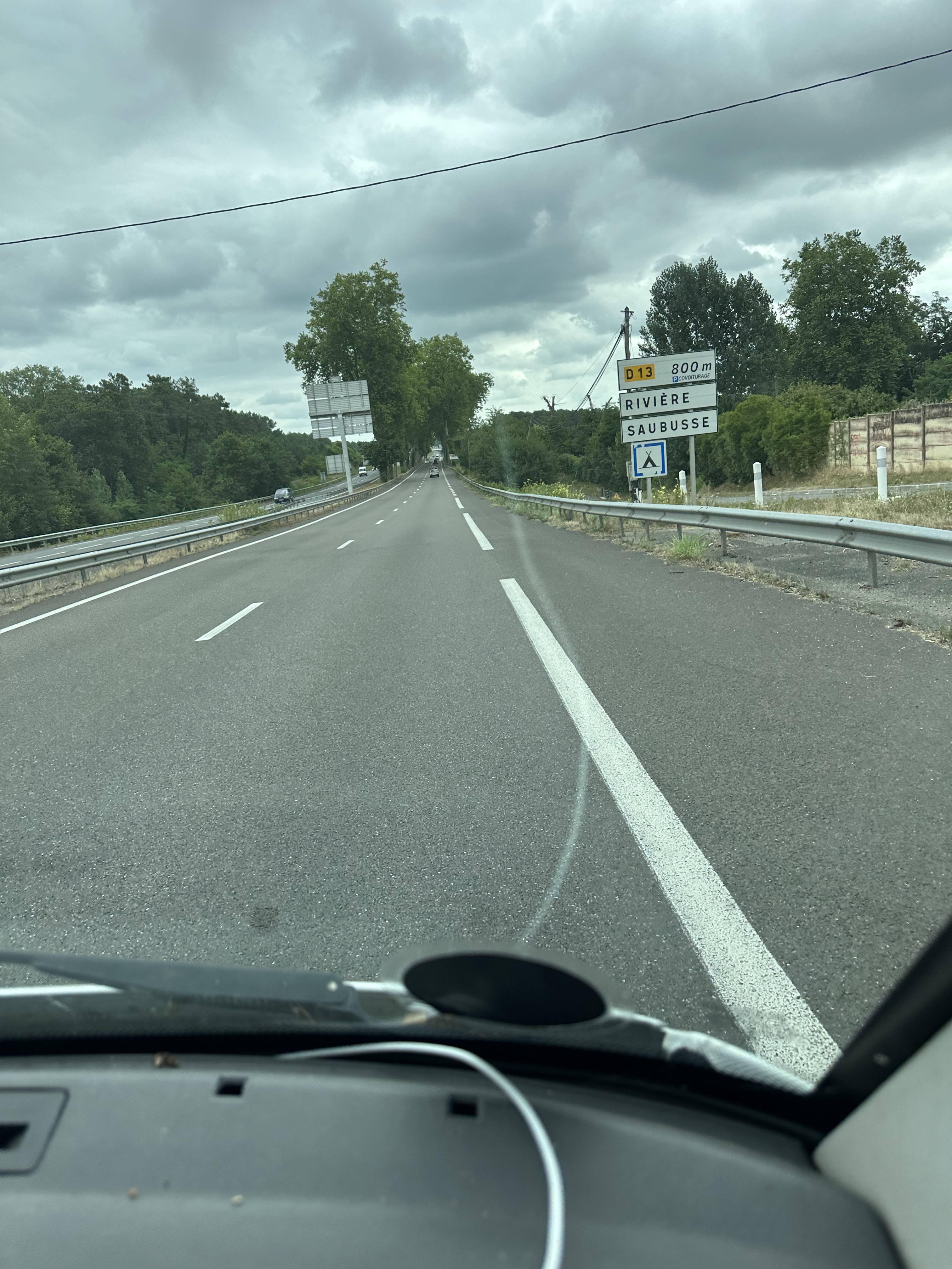 Like most people in the Uk, I pay vehicle duty – or road tax …. can I just point out the quality of our roads, compared to the roads in France? I had set my iPhone up on a forward facing mount so i could voice activate / take simple pictures. Probably all would expect the Toll Roads to be good – but this trip was mainly on none toll roads – see for yourself about how good they were! (Most of this trip took us driving through La Foret des Landes – the largest man made forest in europe!)