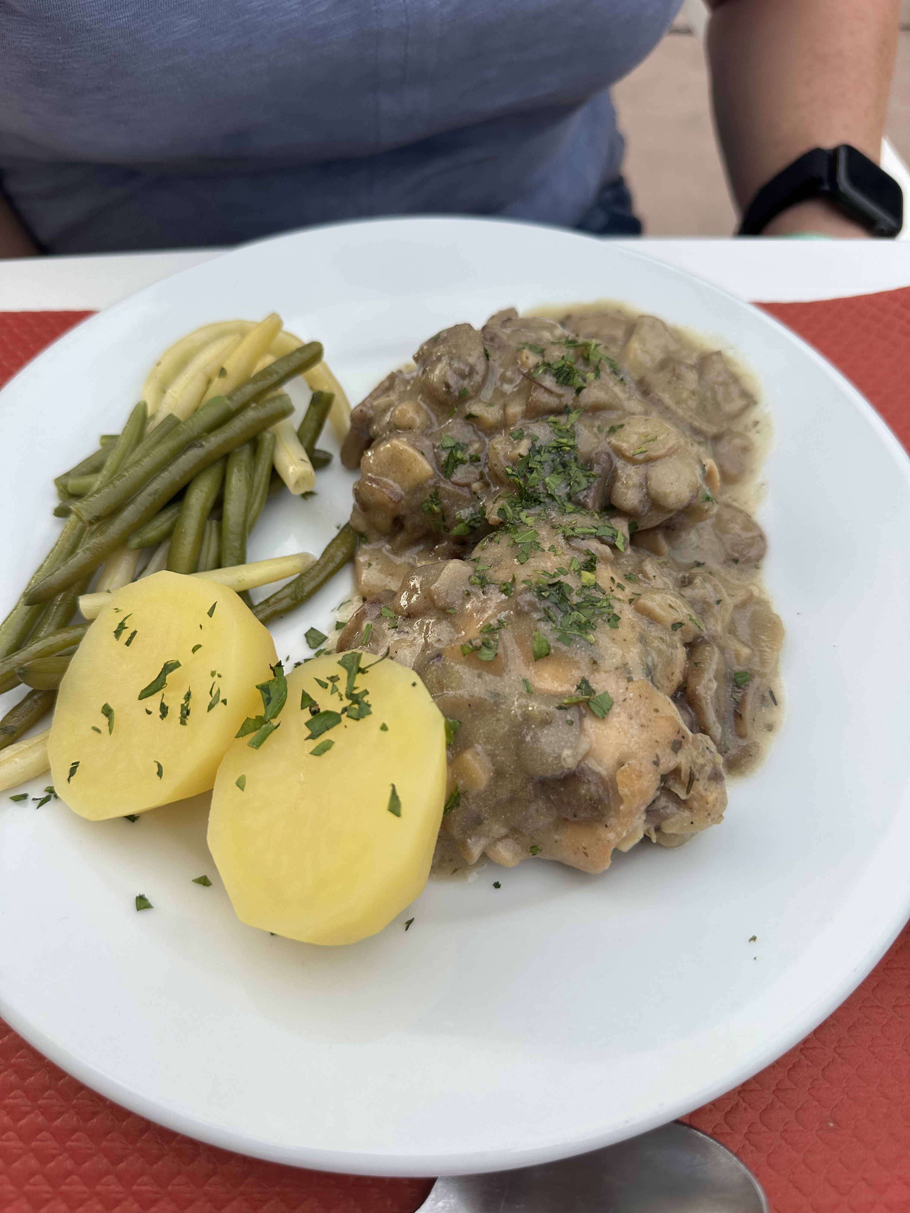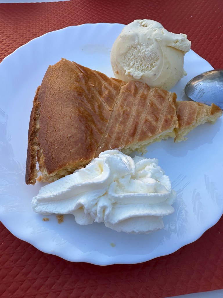 Jo was now fully recovered, and was also looking forward to the food – we tried different choices for two nights, the final night we just had fish and chips, along with Basque Gateaux – which is like but not really Bakewell tart – either way Sue, who did the cooking, produced excellent food.
