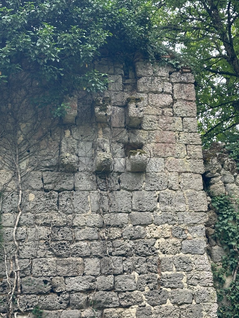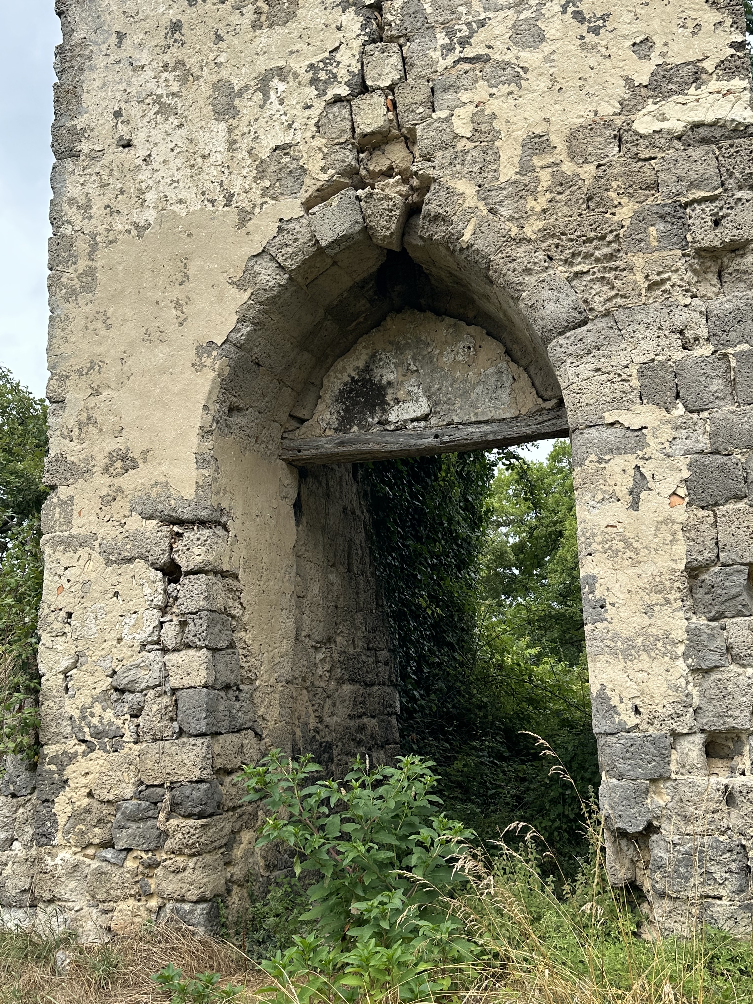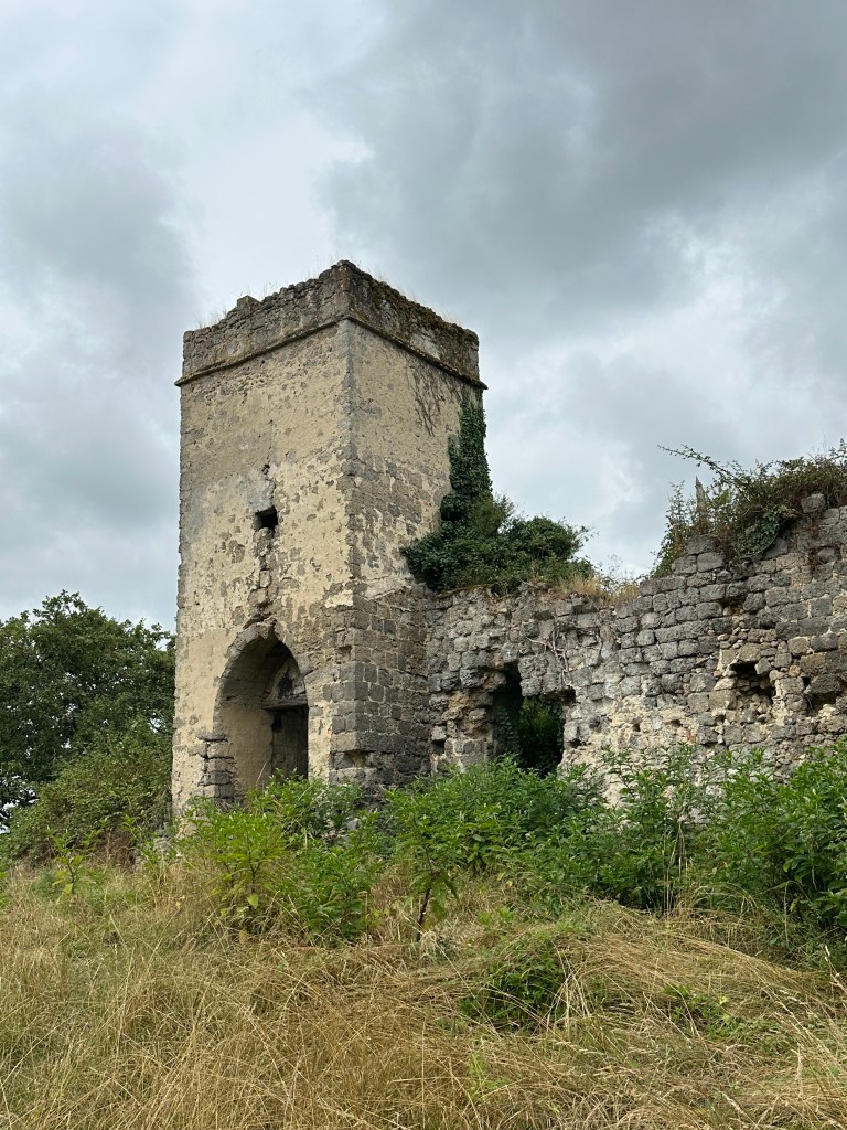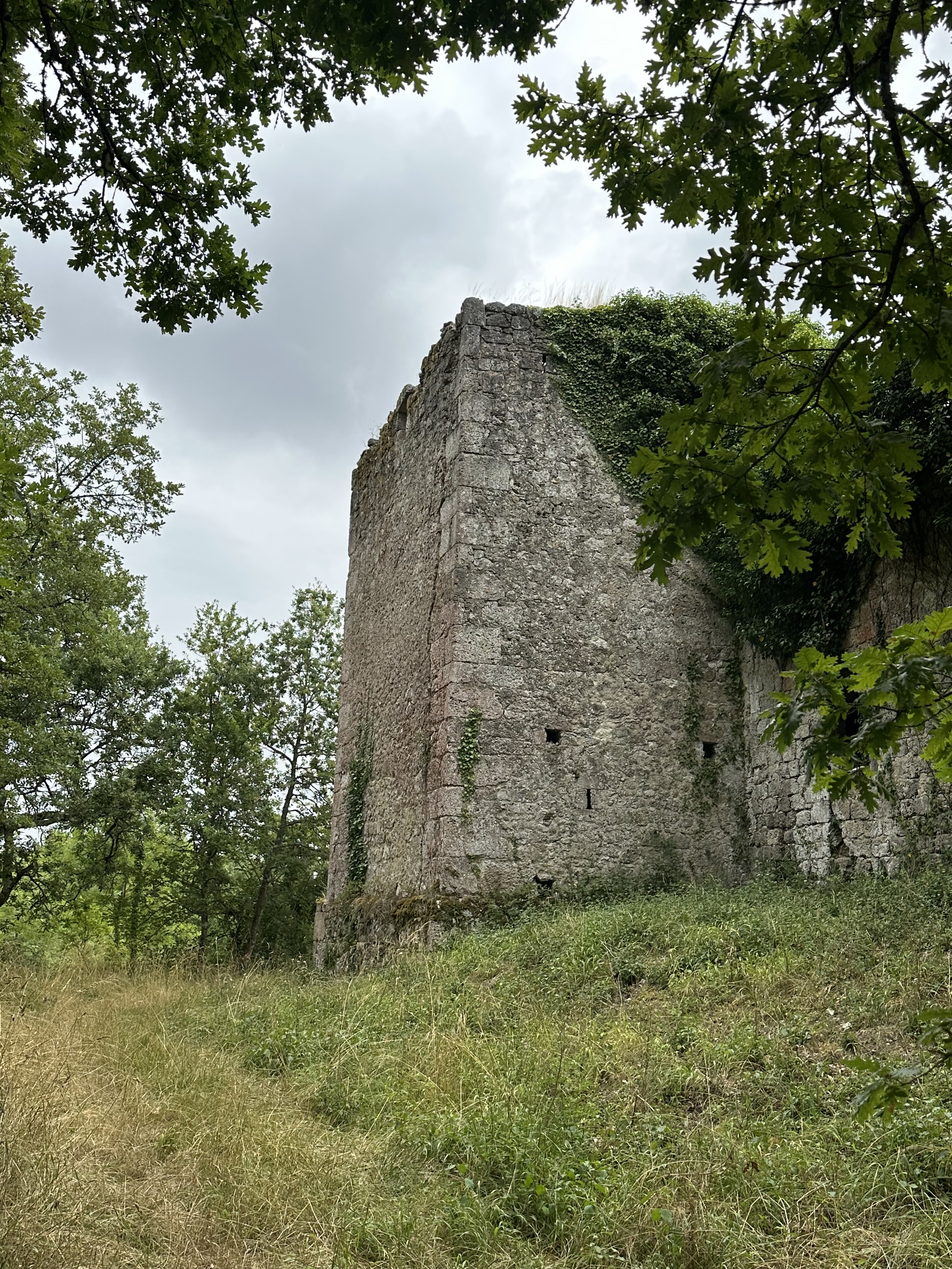 Having eaten well, we thought we ought to explore the area and Sue and George had printed out routes for cycling and walking locally – Sue identified for us a local ruined castle and off we went. The castle is not only ruined, but privately owned – as you will see below the thorns nettles and what ever are going to stop anyone going in! The castle is in Caubeyres and there is very little i could find out about it – apart from it was the base for the Albret family and they had built the castle to use as a base during the 100 years war – anyway, we set out to walk up to it.