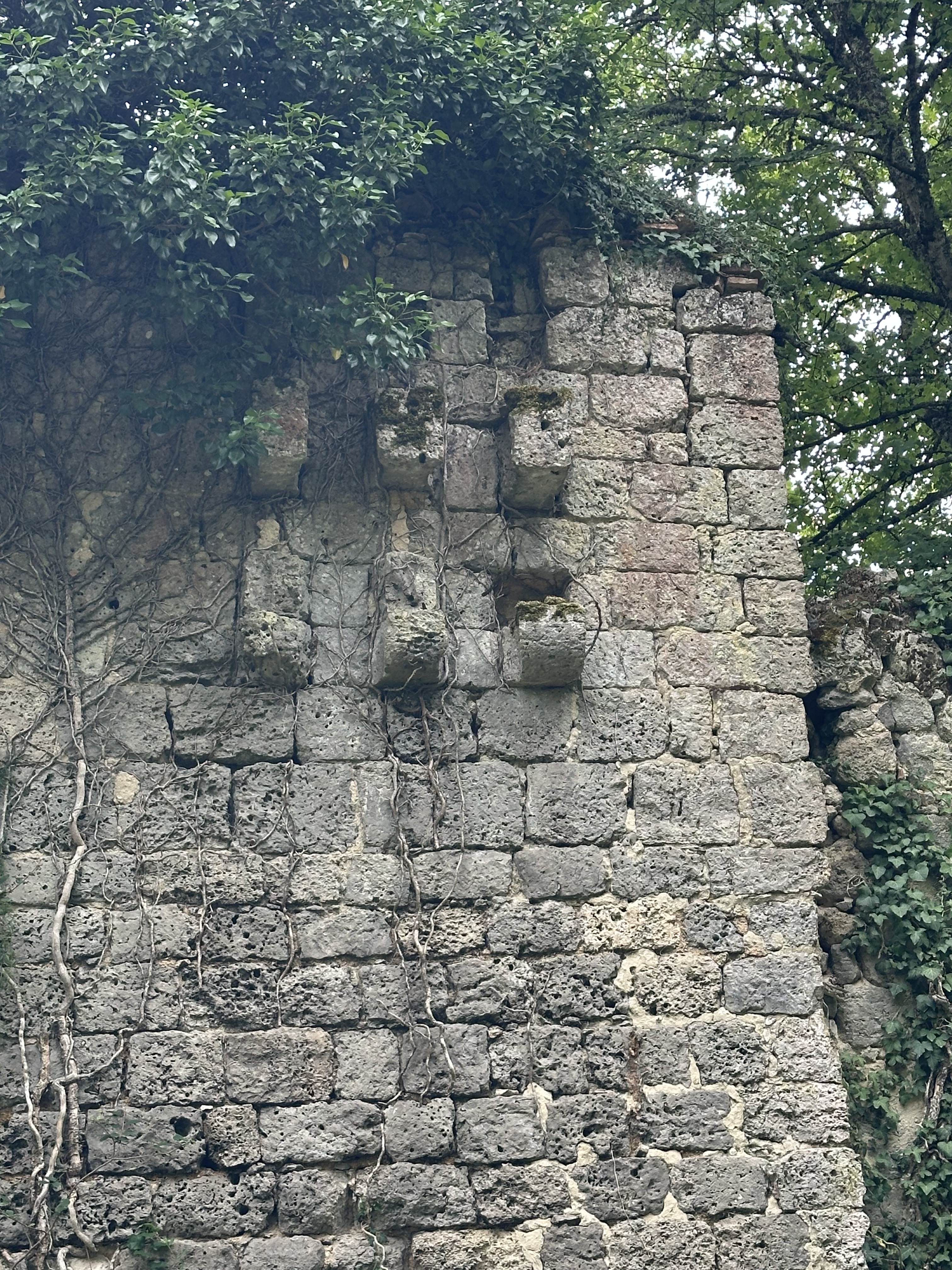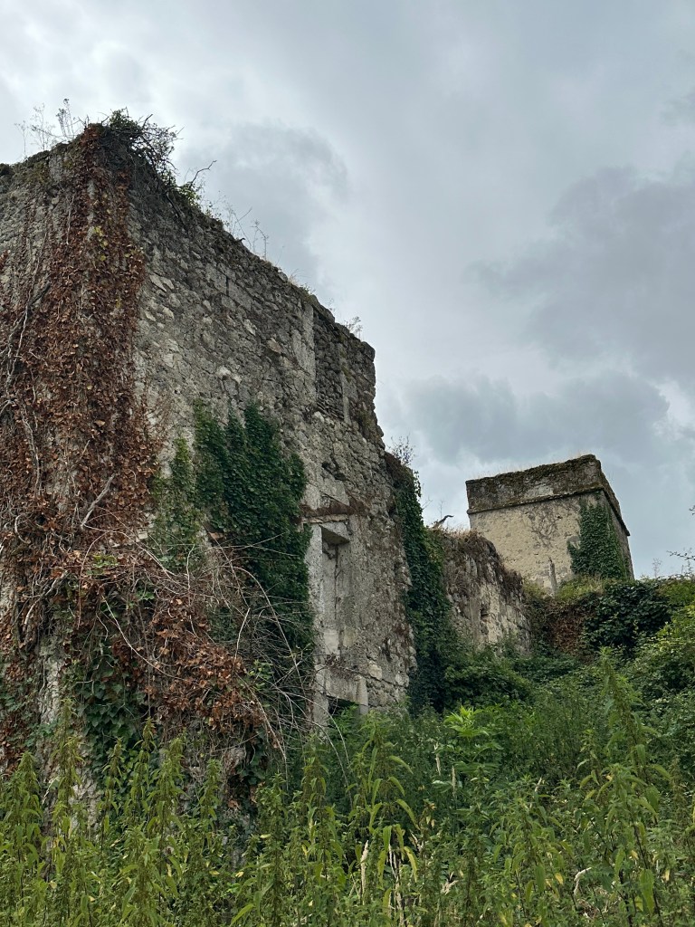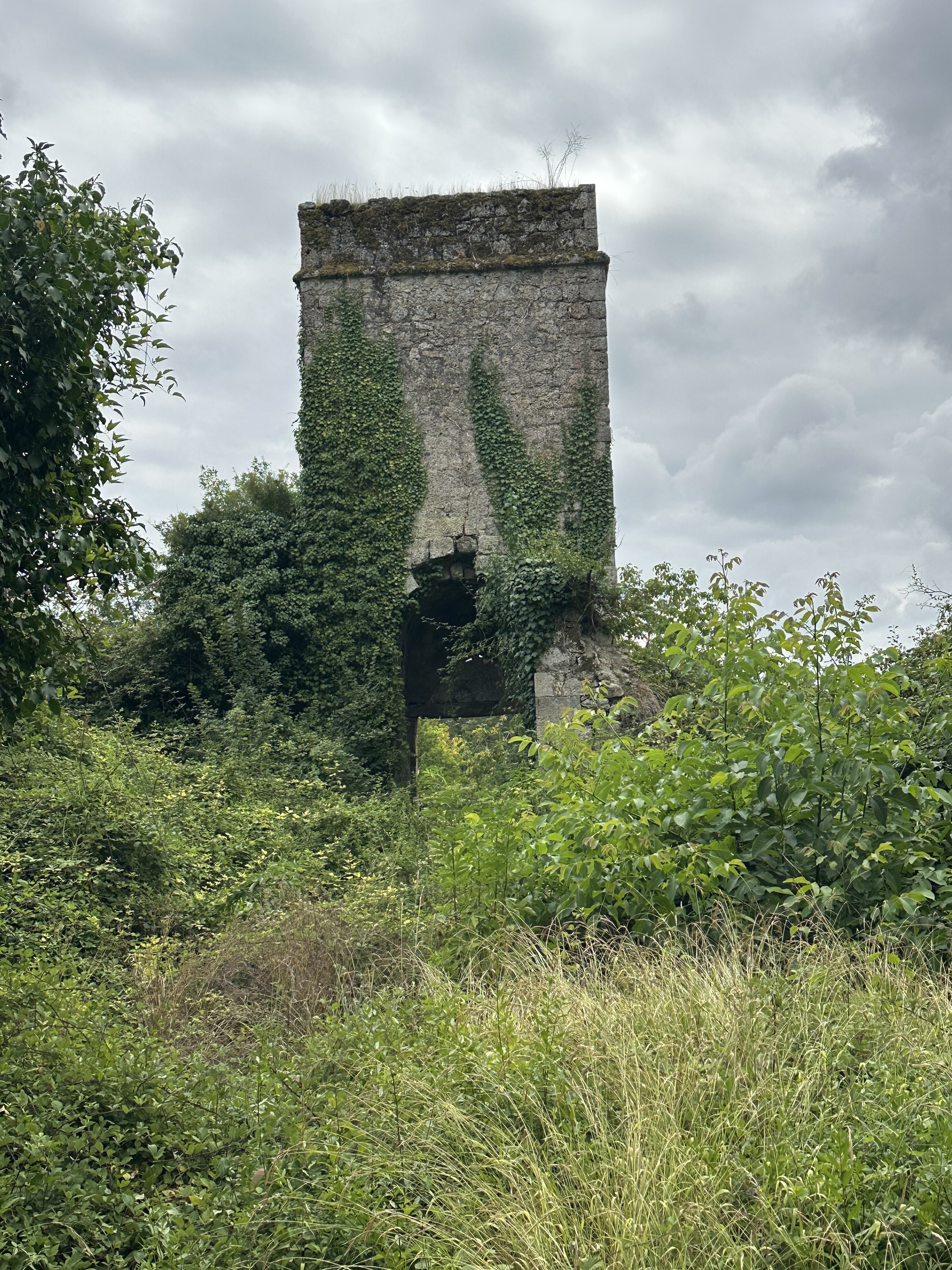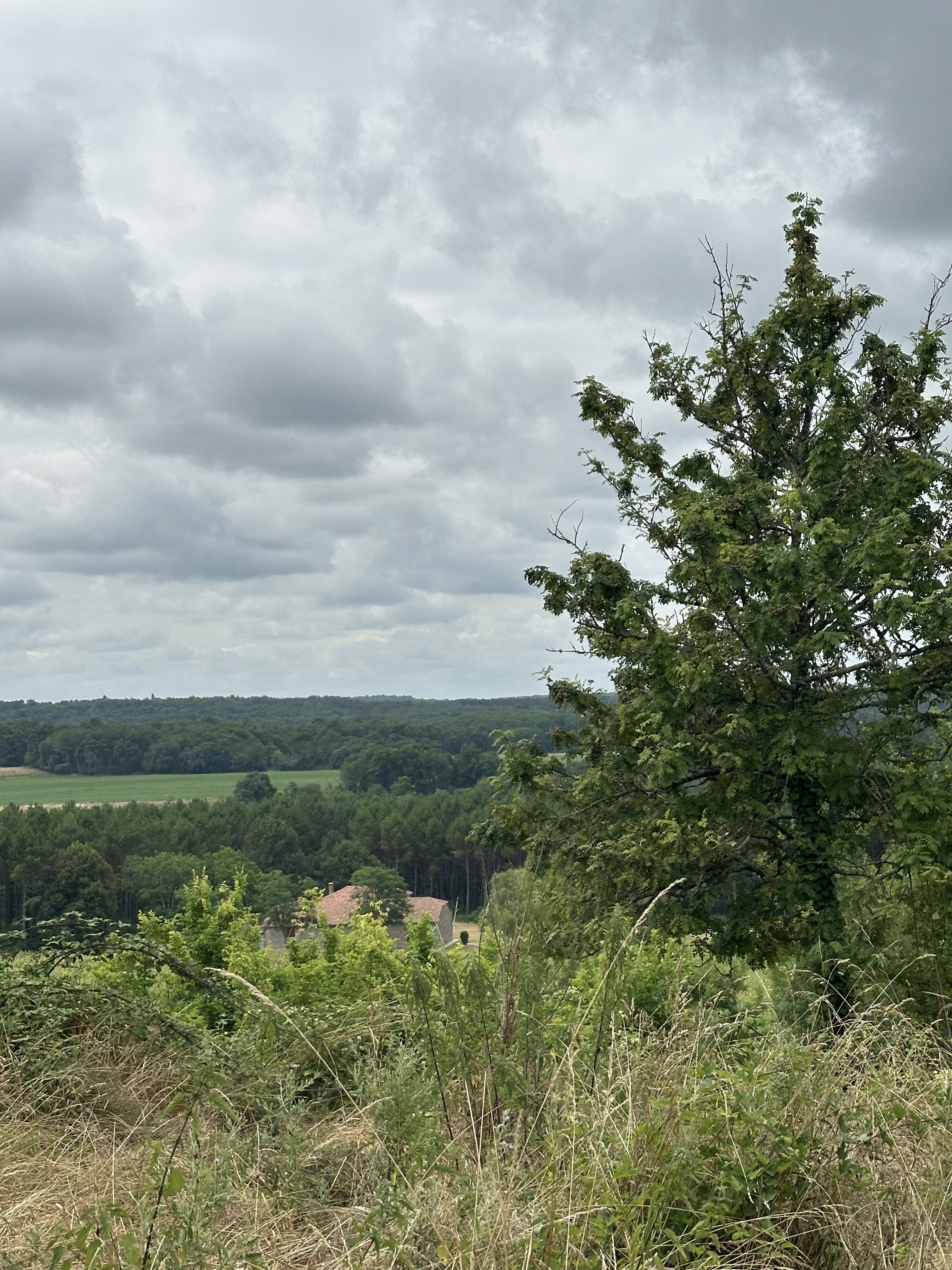 Having eaten well, we thought we ought to explore the area and Sue and George had printed out routes for cycling and walking locally – Sue identified for us a local ruined castle and off we went. The castle is not only ruined, but privately owned – as you will see below the thorns nettles and what ever are going to stop anyone going in! The castle is in Caubeyres and there is very little i could find out about it – apart from it was the base for the Albret family and they had built the castle to use as a base during the 100 years war – anyway, we set out to walk up to it.