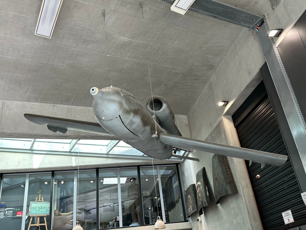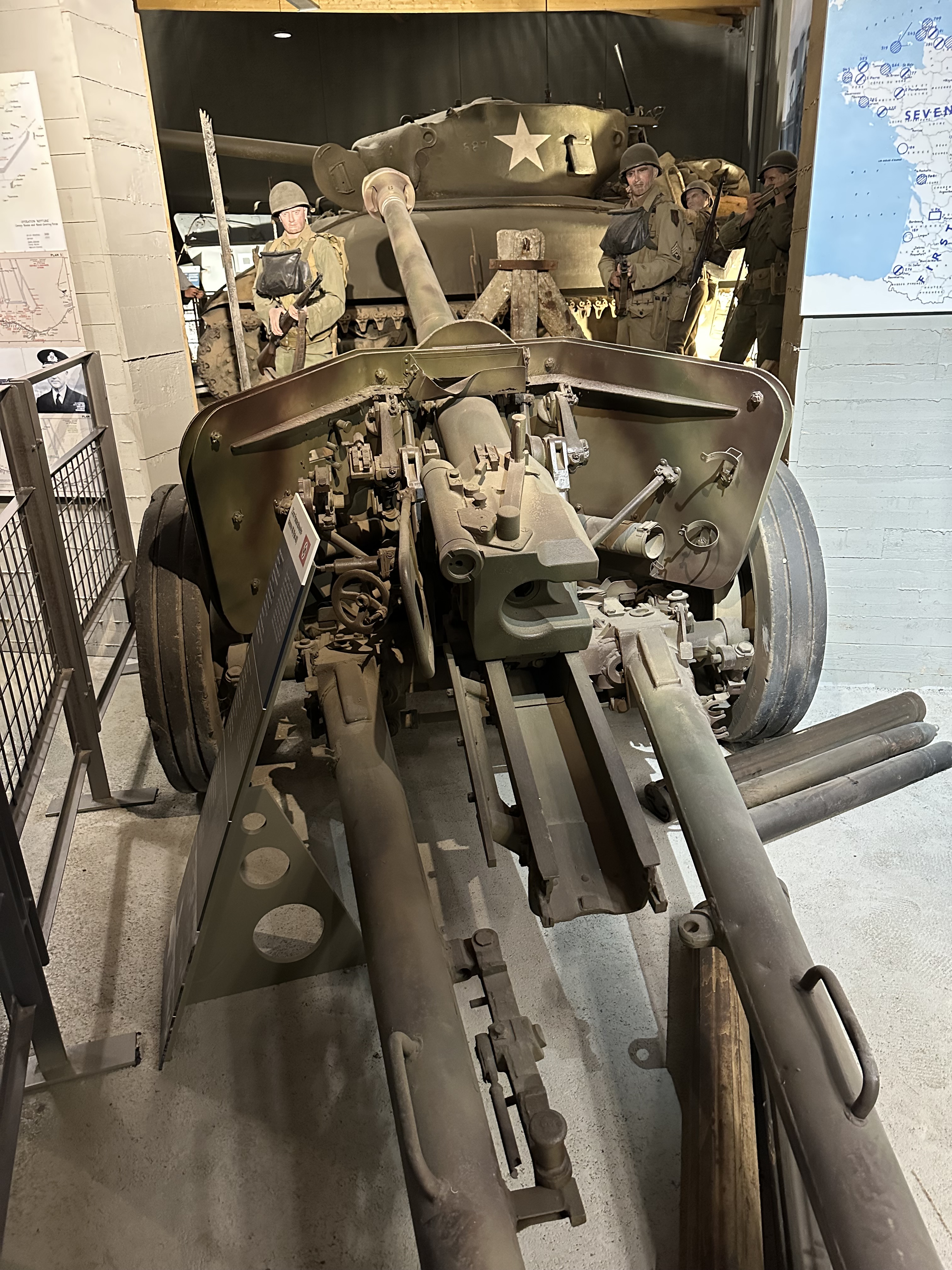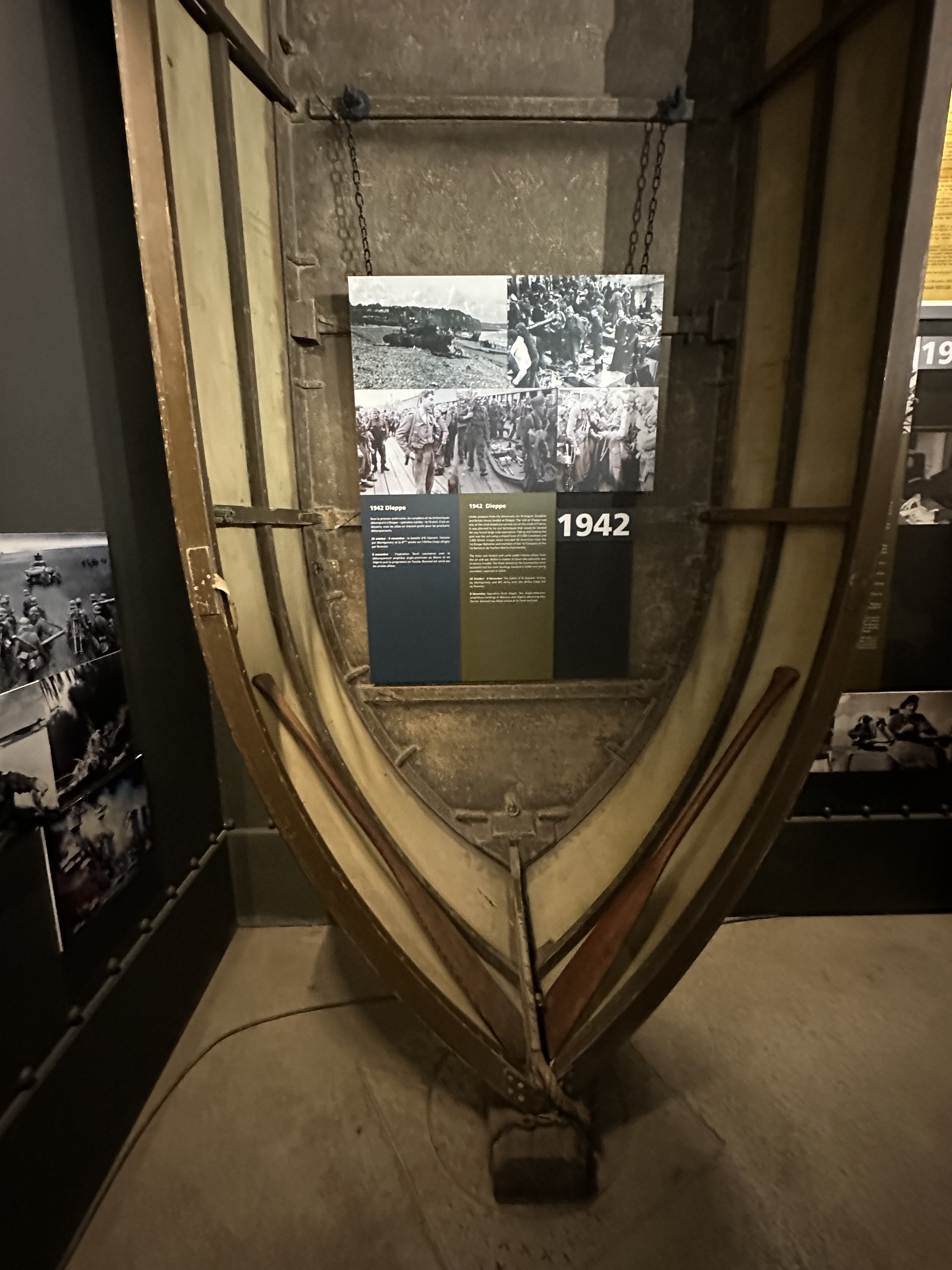 As we arrived at the museum, we saw a lot of signs for other museums and points of interest. The museum itself was a walk through, with much of the exhibits being presented in diorama form, which did bring things to life. The initial planning of D-Day was explained very well, and i did not realise that Eisenhower had pushed for more beaches – from four to five; i also did not realise how long it took all of the beaches to become a joined up beach head – six days! There was also a good explanation of life under the Third Reich – and the rise of the French Resistance . The early parts of the museum focused on the initial attacks – there was a collapsible boat that linked to the path finders who landed first, and there was an explanation of Pointe du Hoc which I was not even aware of.