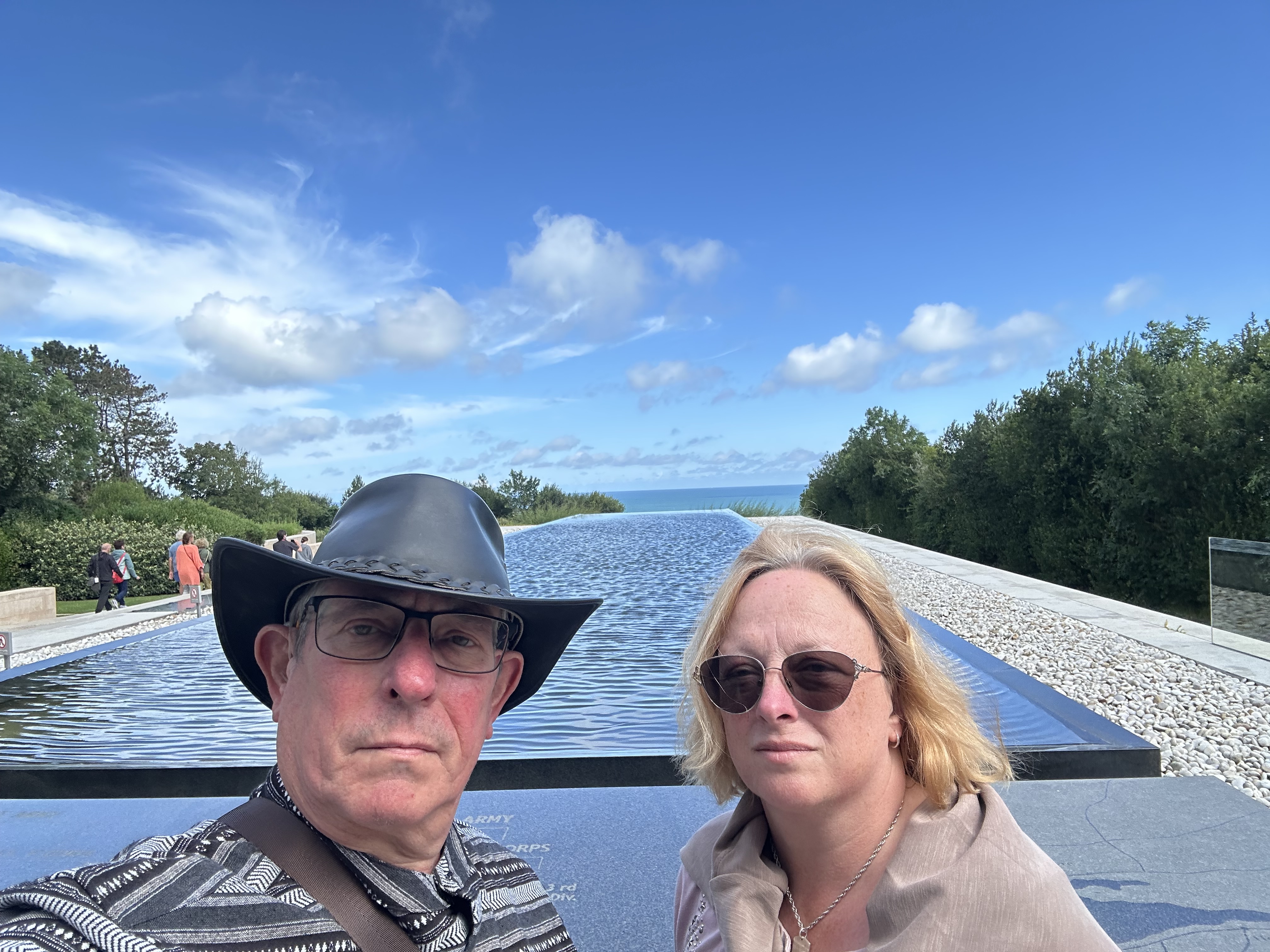 Again the French organisation of the car park was wonderful – clearly designated spaces for Motorhomes, cars and coaches, and very well marshalled. The walk from the car park led to the visitor centre – we elected not to visit it, but the still pond that looked toward the sea was when i began to appreciate the peace, and the respect. There were many nationalities visiting – and some were from the USA; on the whole of our trip I noticed that many of our colonial cousins were keeping a low profile – I guess its to do with how the rest of the world views that Orange Faced Baboon’s Arse. But enough Politics – as I looked across the lines of white crosses and Stars of David of all those who died fighting Fascism, i wonder what they would make of Trump and Netanyahu, both somewhere to the right of the right wing.