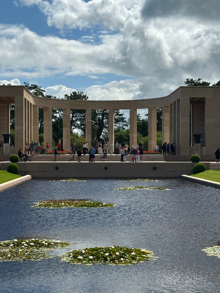 In the centre of the cemetery is the memorial and assorted buildings that celebrate the sacrifices made – and i think its important to say just how respectful the visitors were – it was quiet, peaceful and very reflective. The Cemetery overlooks the beach and as i looked across the sand dunes it was hard to envisage how it looked on D-Day. As we paid our respects we were both quiet; we left and did the short drive to Pegasus Bridge – which will be the next blog post.
