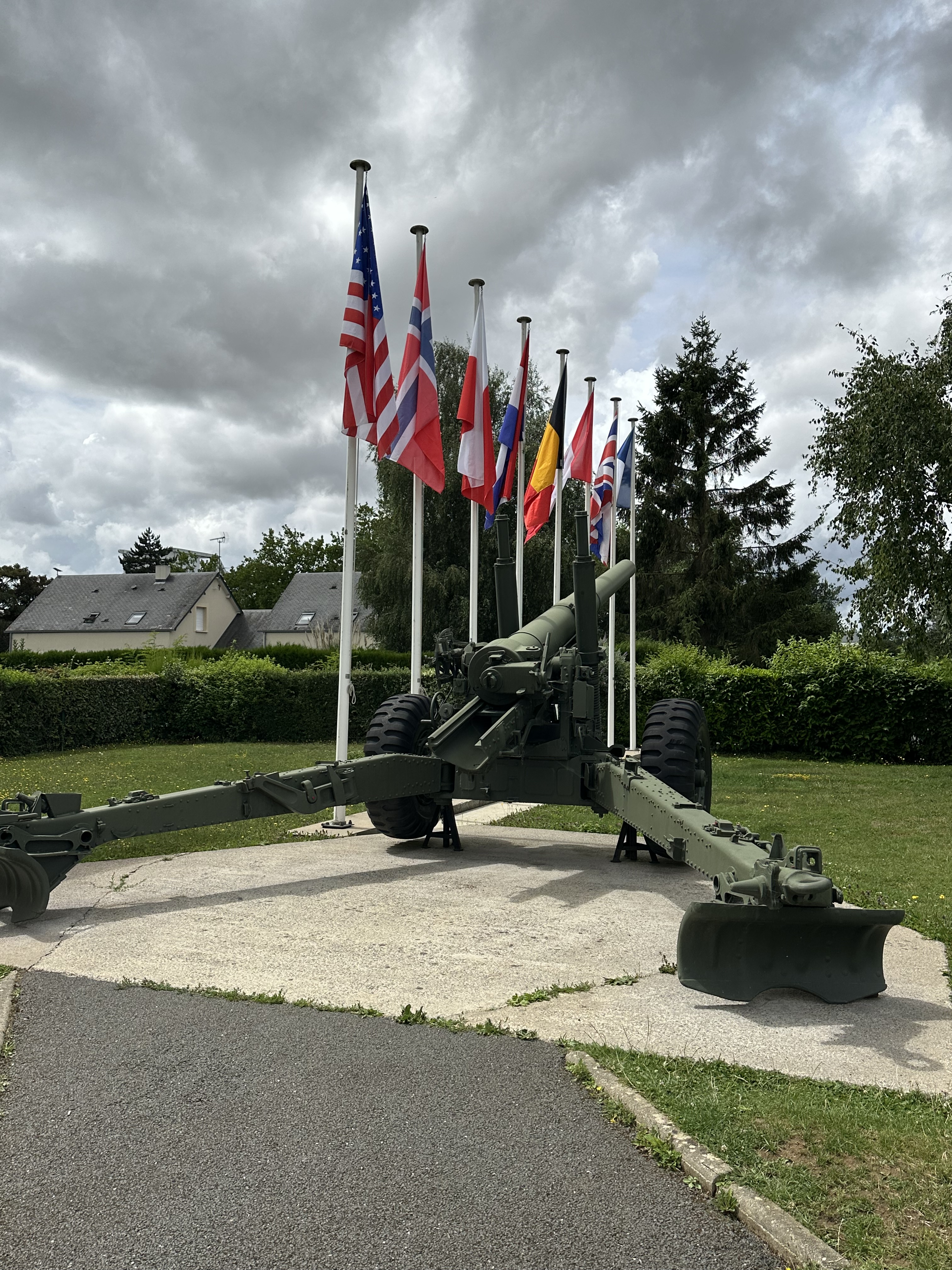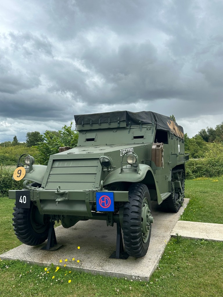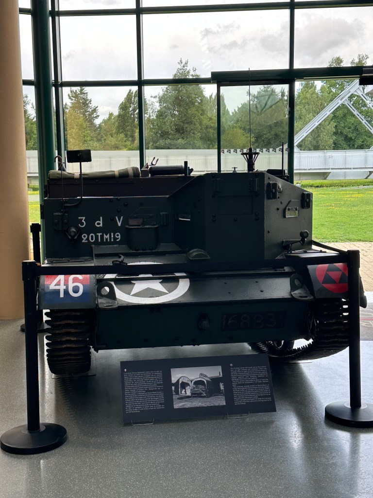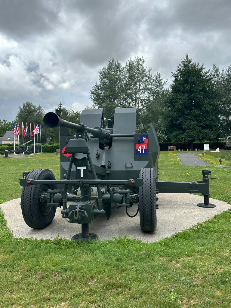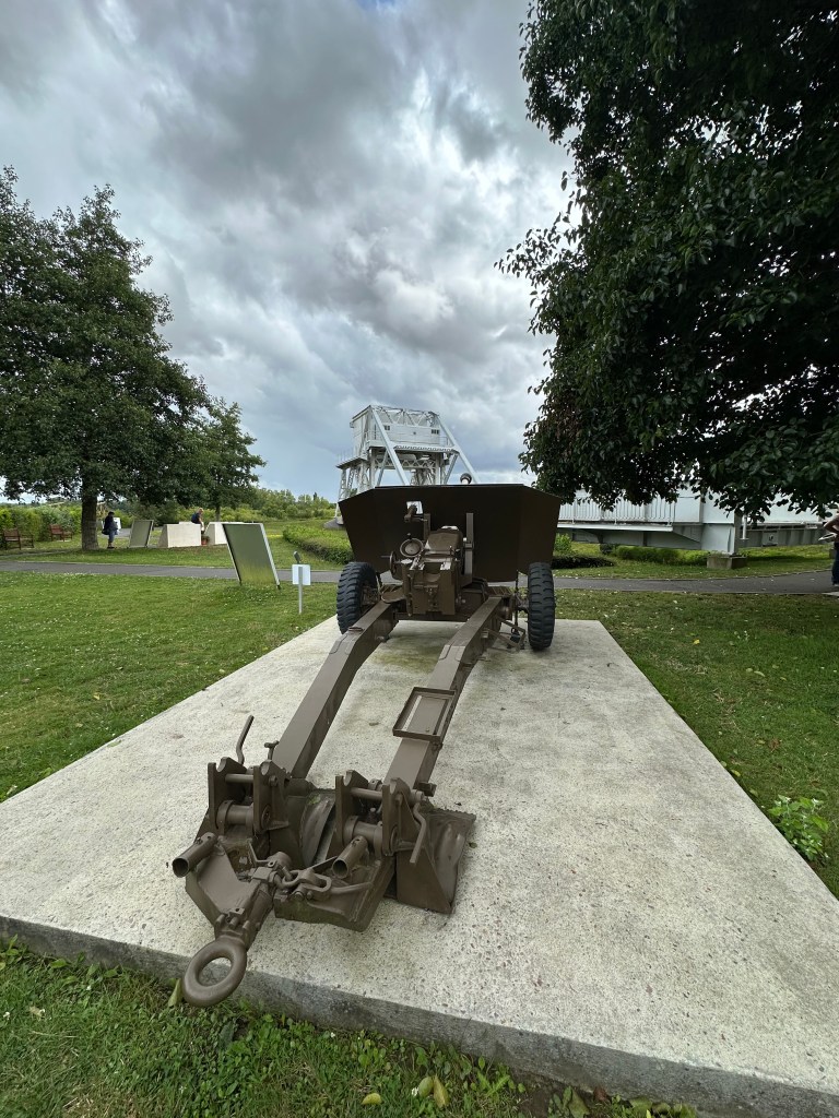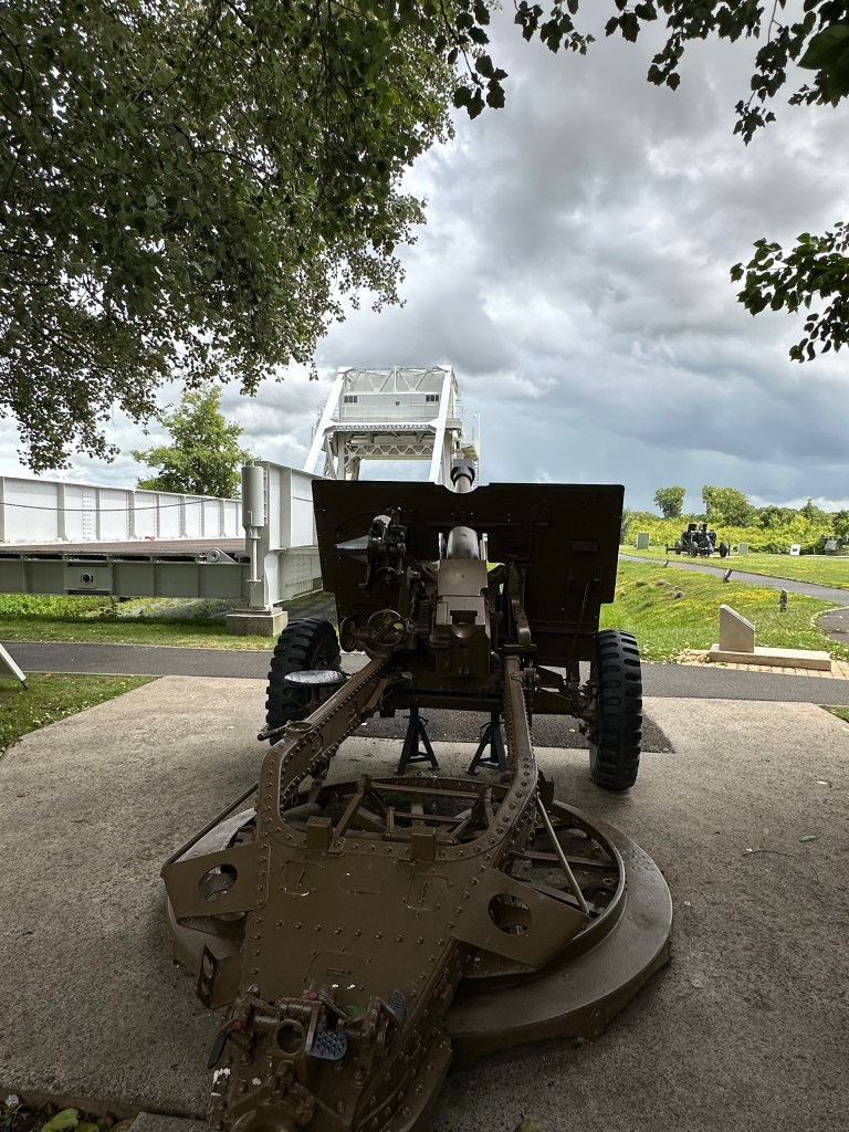 We drove over the modern replacement for the original – it was replaced only because it was considered to small, and unusually for a tourist site in Normandy, there was no dedicated parking spot for Motorhomes – but there was ample space along the lane by the museum. Unlike Overlord Museum, this was incredibly personable – this was the story of a few brave men. Five gliders landed with in 50 metres of the bridge at 0016 on 6th June 1944. They took the bridge with in ten minutes – hence being the first “capture” of D-Day by 0030. The museum tells the story of the bridge, and the men who fought there – and their stories are amazing. Many of these individuals uniform tunics and medals are on display. Jock Pearson’s Battle Dress is there – DSO and three bars! The external displays are static, while the interior exhibits are eloquently described, and the sheer bravery of these young men is unreal. I was also struck by how small the uniforms were – I do not think there was a battle dress larger than a 38″ chest.