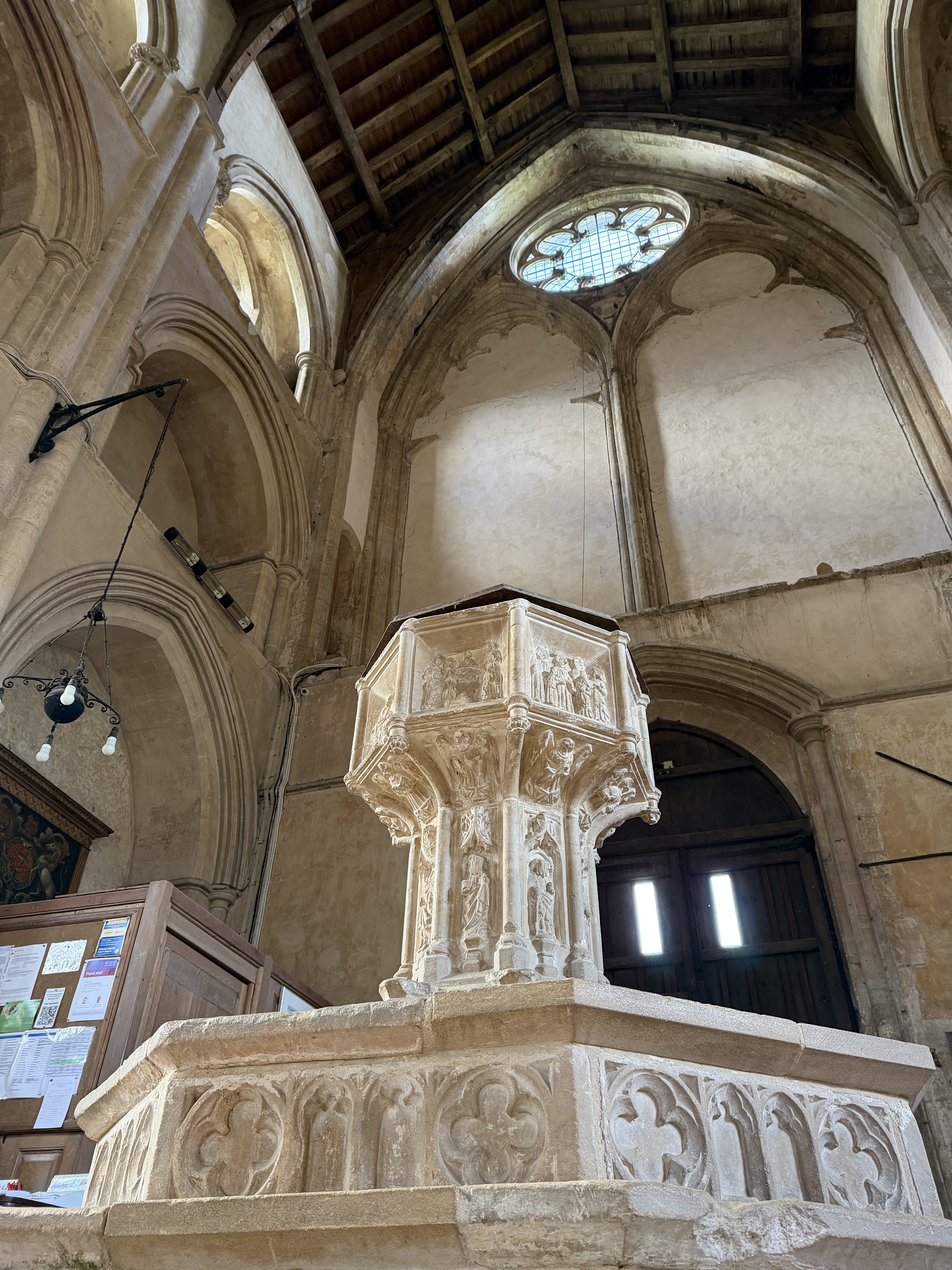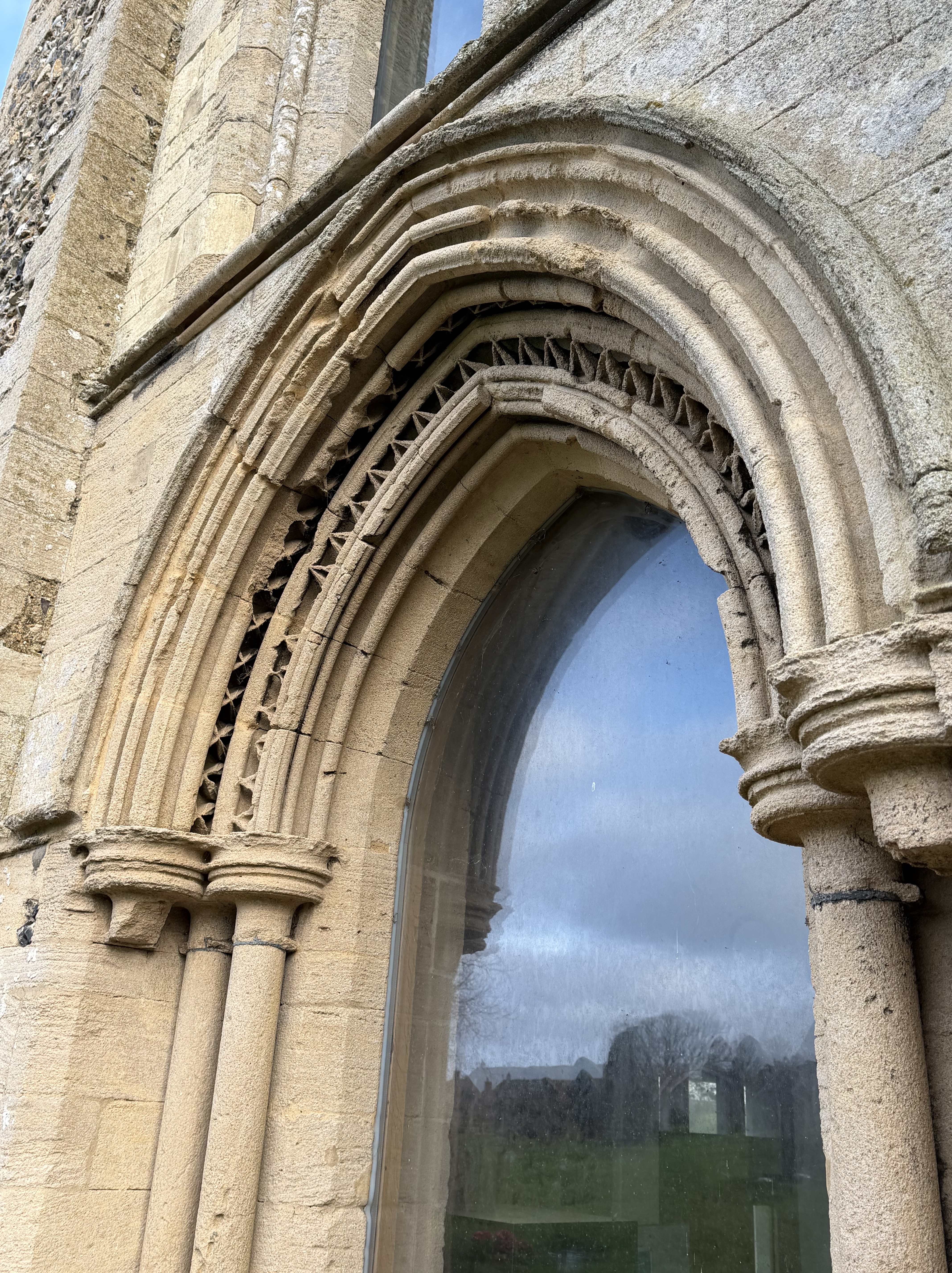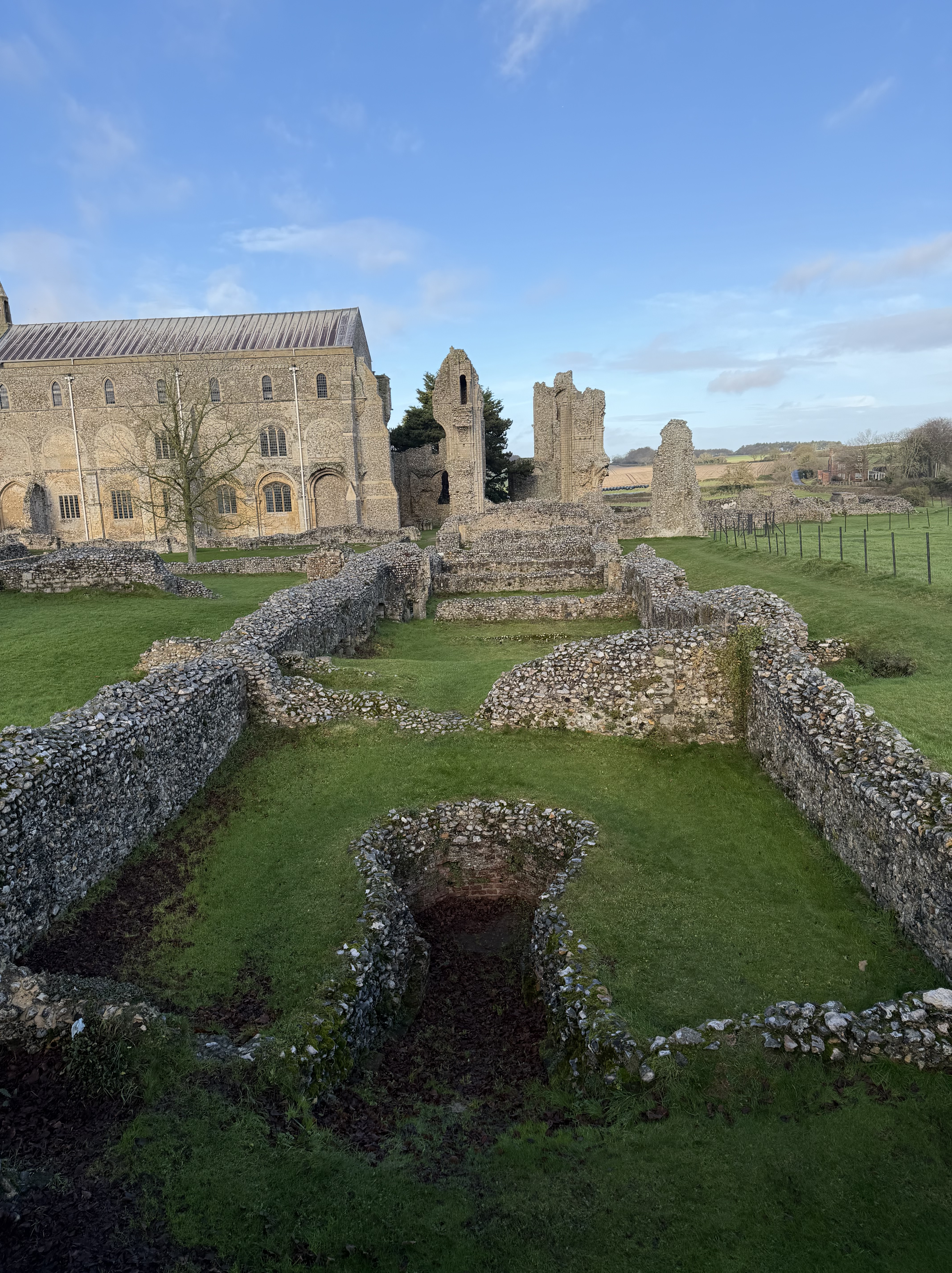 Norfolk is dotted with these kinds of ruins – we have an awful lot of extant Wool Churches as well, but many of the old ruins that followed the dissolution remain wonderful places to visit – and each time I pick out something new to admire; this visit it was the lectern with its wording and the original iron frame for the round stained glass window on the wall behind the font – living, visible history.