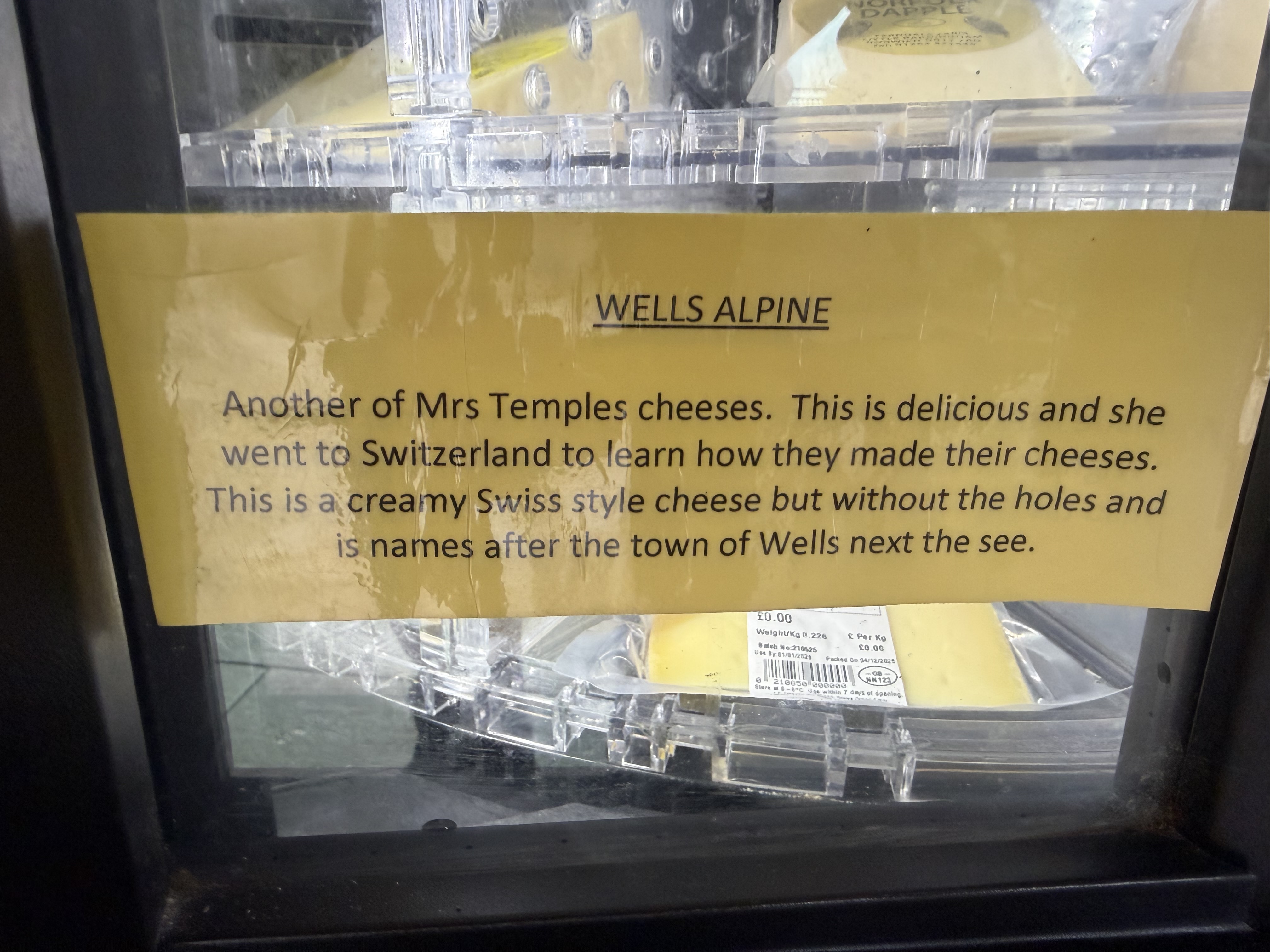 After a potter around the Ol Stuns, it was time for a coffee and a cake at The Binham Parlour. The Parlour is a very NICE place – and it seems to be loved by the Chelsea Tractor set – certainly judging in my mainly bitchy way, by the clothing worn by the clientele – when even a three year old is wearing designer clothes and boots – no, I am not joking, then you know the sort of people there! It’s a lovely place to stop though; attentive waiting staff and the food was very nice – I had a superb sausage roll – obviously prime quality pork mince with just seasoning in a very good crust. The other reason for visiting the parlour is the cheese machine…. I have spoken before of the selection of cheese that’s local to us but just look at the variety !