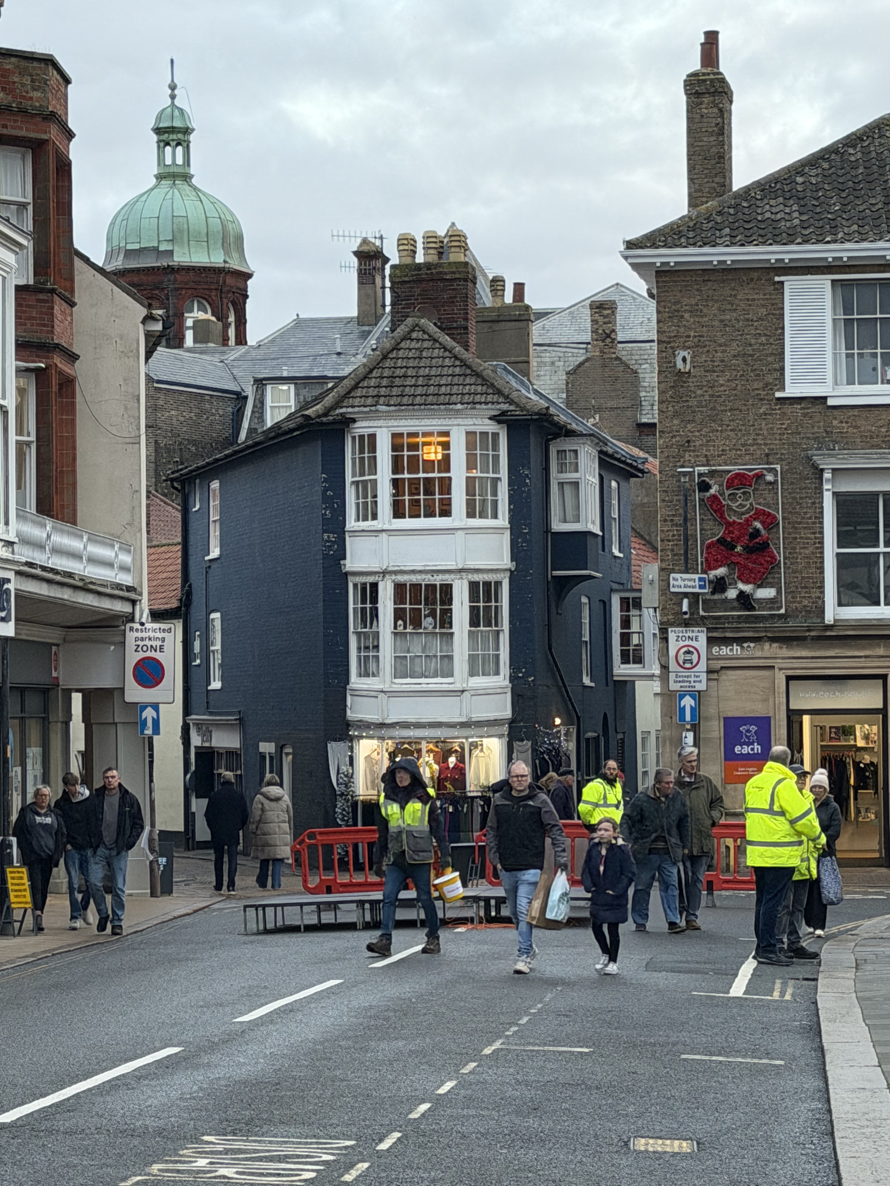 I had hoped for this trip to have a few new toys to play with – like the Go pro that I want to mount for taking video in transit, but thanks to playing with the water drain earlier I had run out of time 😦 The road across the top of Norfolk is picturesque, even when the weather is poor – next time, I will capture it. (I am also glossing over the somewhat concerned noises Jo made when i went down what appeared to be a cow lane and across quite a full water ford….)We got over to the campsite for around two in the afternoon, and got ourselves parked up. The pitch was level and after a bit of an argument with the frost valve – see earlier! We went for a walk into the town.