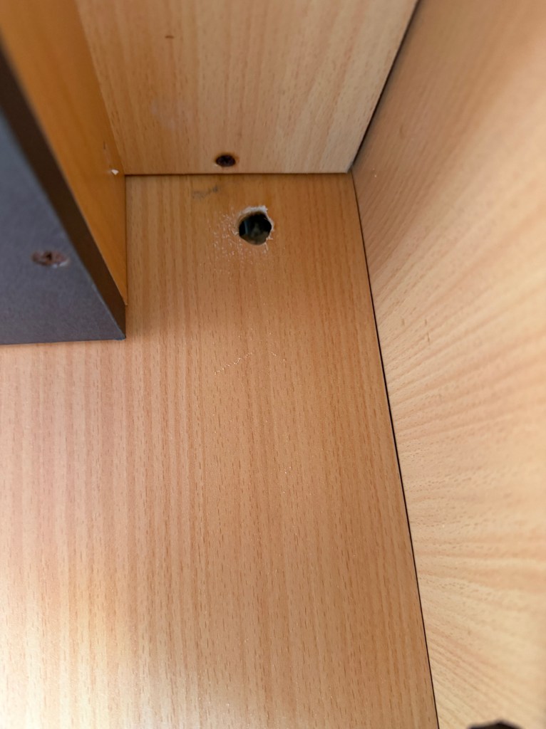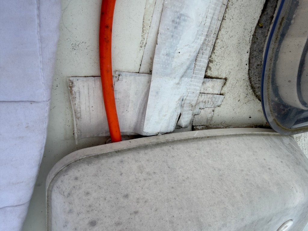 I started off by taking the microwave out and laying out the cable – then drilled through to allow the cable to be run behind a cupboard leaving a short length of cable visible – my initial plan did change a few times as I realised I had more wriggle room with hiding cable behind covers! To get the starlink cable up onto the roof was done using a bit of savvy – I pushed an old bit of flex across the roof aperture – from the empty microwave bay, I could see the orange cable, and with some long nosed pliers was able to pull it down and through. I then used insulating tape to secure next to the starlink cable and bound it so it had no snag points. Then back up the ladder to the roof where I could pull the cable through and feed it to where I was going to mount the starlink. I had wanted to mount it on the front bar but the mi-fi aerial was already there so…..