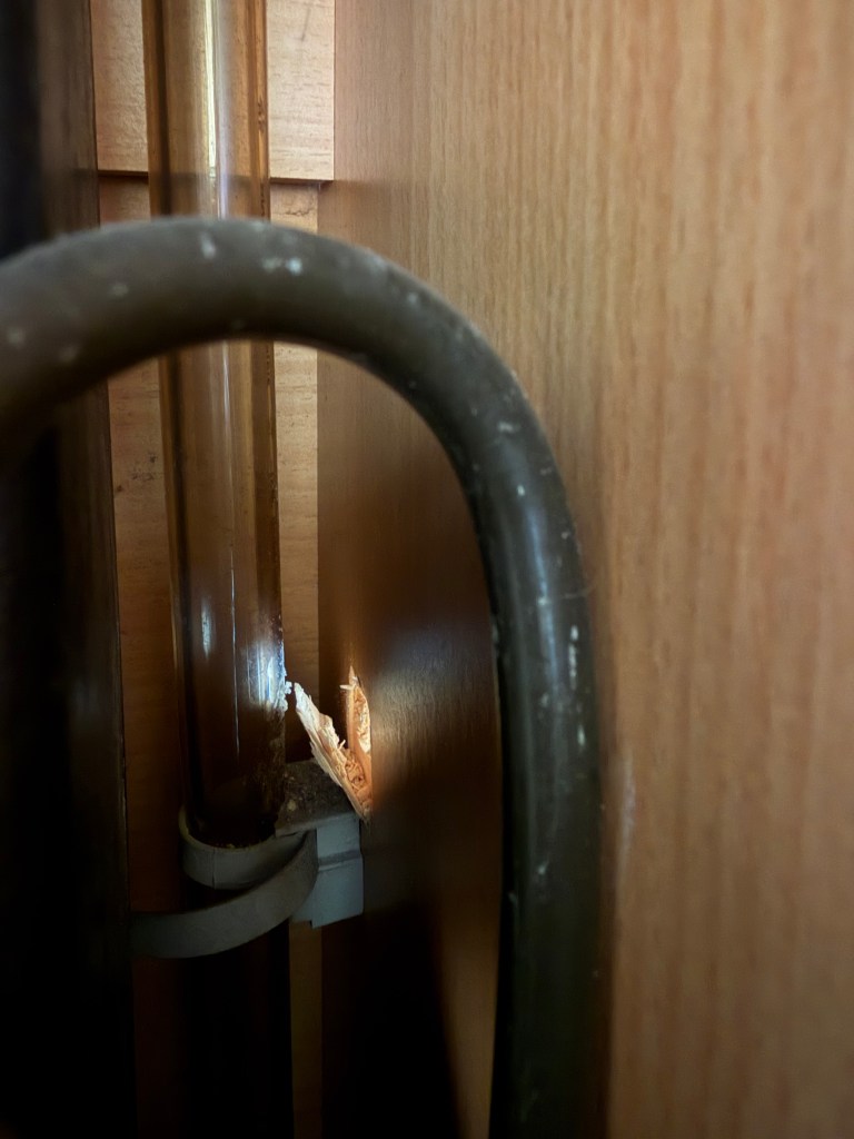 So, I then went to inside, and started to to put things together neatly; I noticed that the wriggle room on the panels was ample, and meant that I could secret most of the visible cable. Having secured the connection box out of site – no more nails sticky pads! I then ensured the cable was also secured – because it was being the panel and effectively invisible, gorilla tape was the easiest and cleanest solution.